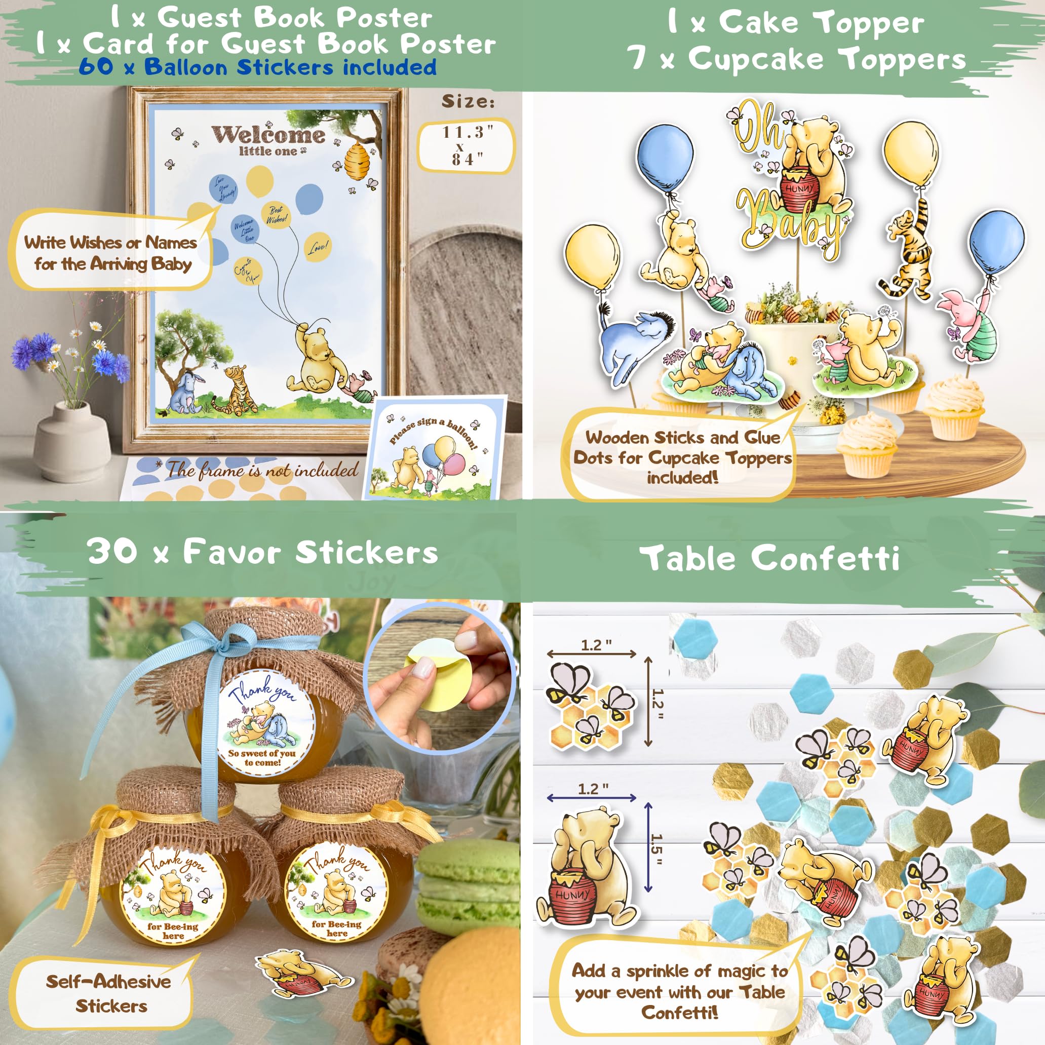 This Winnie Teddy Bear decorations pack features everything you need to create a charming environment in any space; Baby boy baby shower decorations ideal for a boy's baby shower or other events