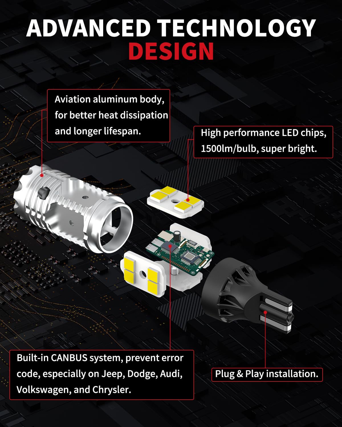 Long Lifespan: Built with an all-aluminum body and an intelligent IC driver for superior heat dissipation, this 921 LED reverse light is resistant to high temperatures and aging. Waterproof reverse light for reliable performance and extended lifespan, it eliminates the trouble of frequent replacement of reverse light bulb