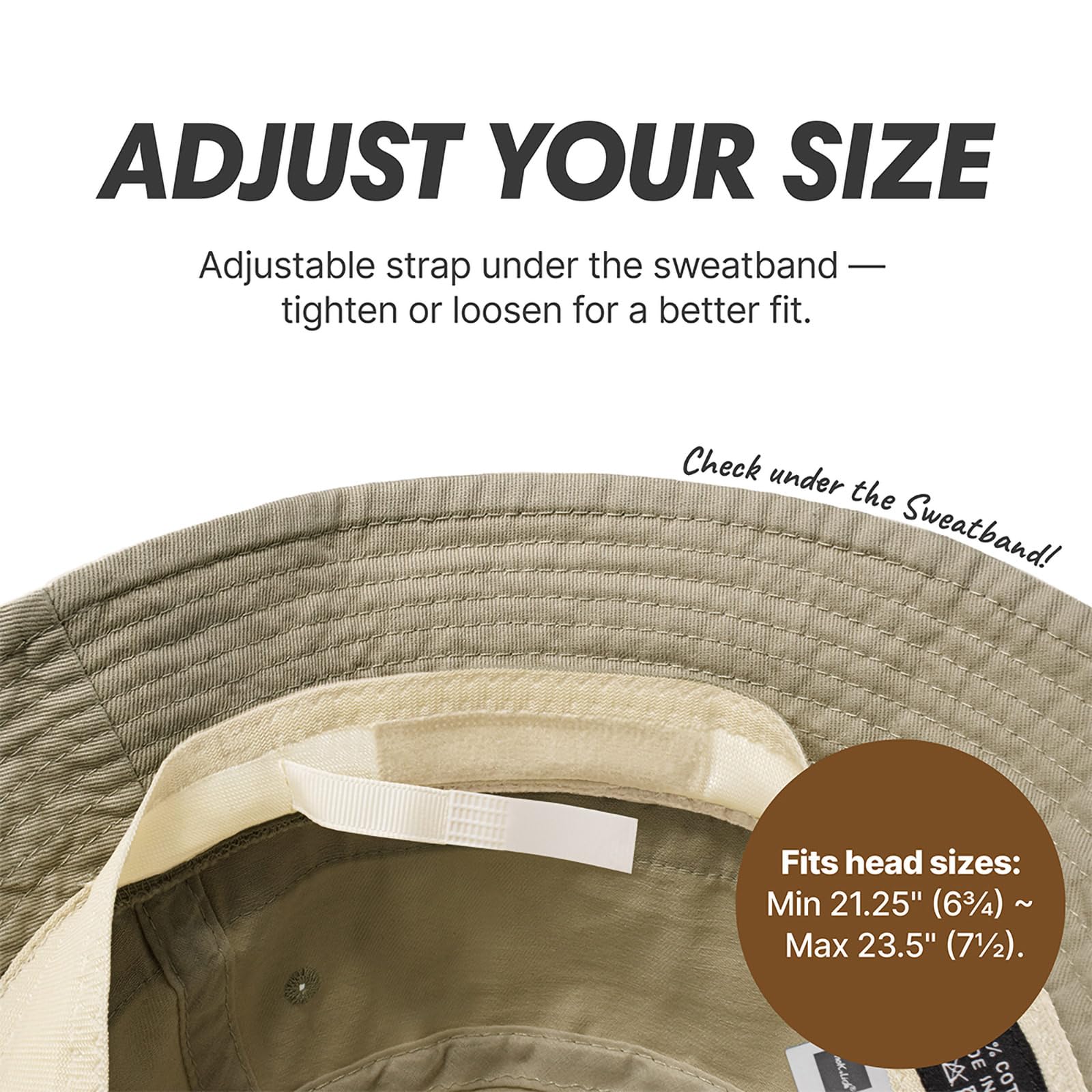 [ADJUSTABLE COMFORT] – Hidden inside the sweatband is a clever hook-and-loop strap that lets you tighten or loosen the fit. Whether you're heading to the beach or the city, enjoy a hat that moves with you and never feels off-size.