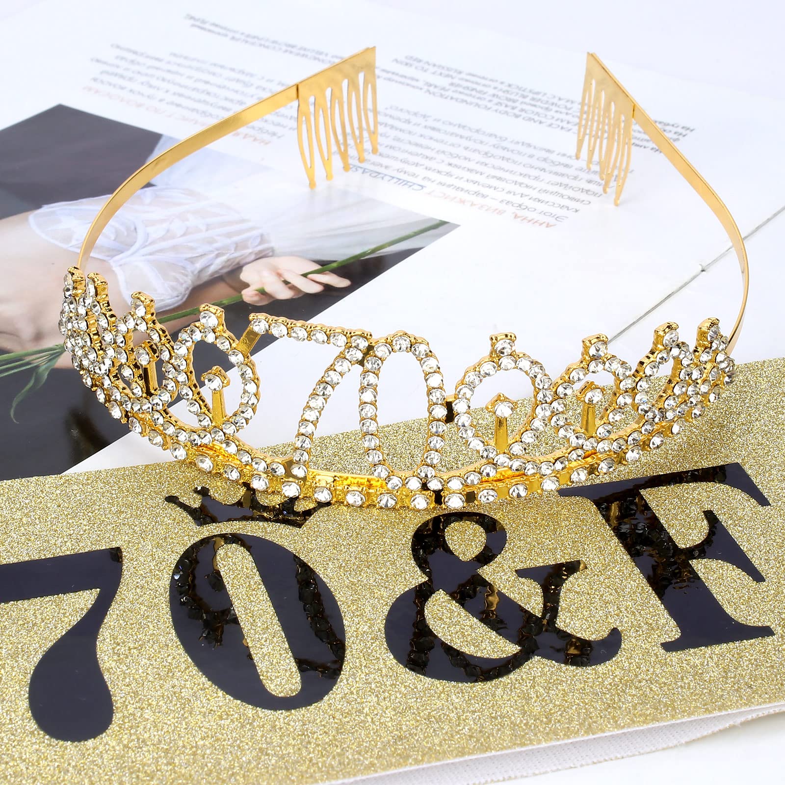 ♕[Great 70th birthday gifts to you love]:The birthday sash and tiara kit is a perfect choice for your birthday party decoration, which can make you look shining and charming on your birthday party.