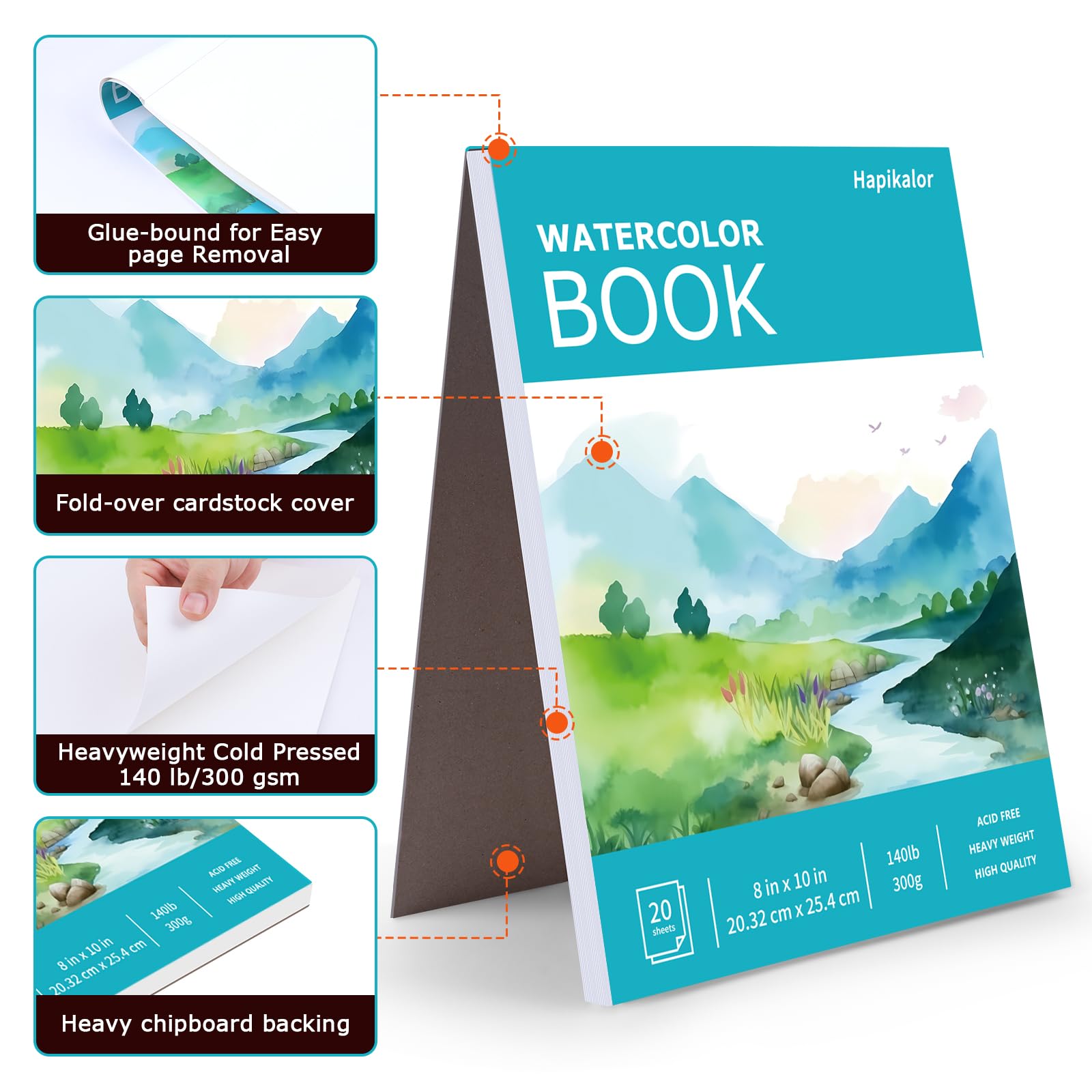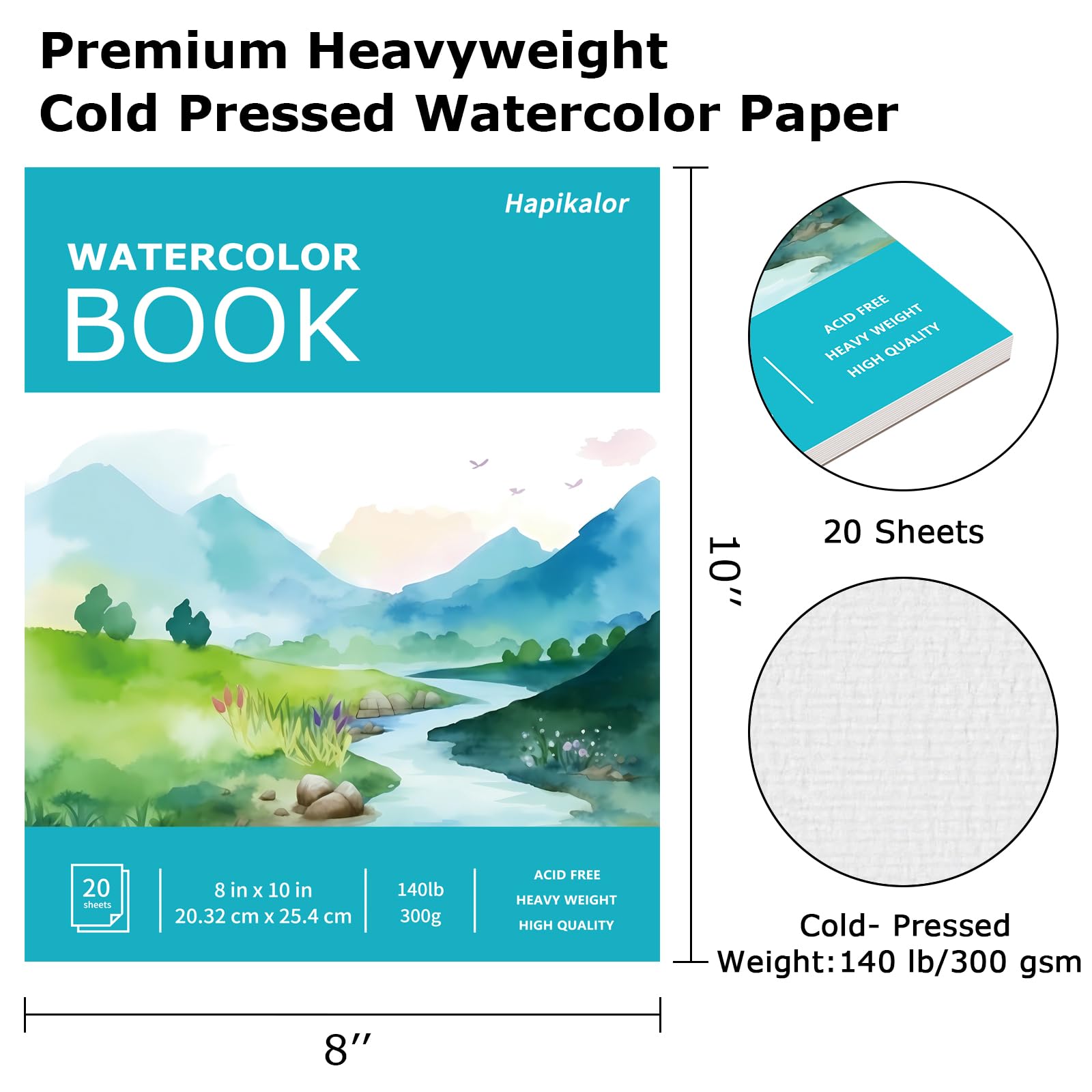 【Premium Heavyweight Cold Pressed Watercolor Paper】1 Pack of 8"x10" Professional Heavyweight Watercolor Pads. 20 sheets in each watercolorpad, total of 20 premium watercolor paper sheets at the affordable price, that are ideal for watercolor and mixed media techniques.