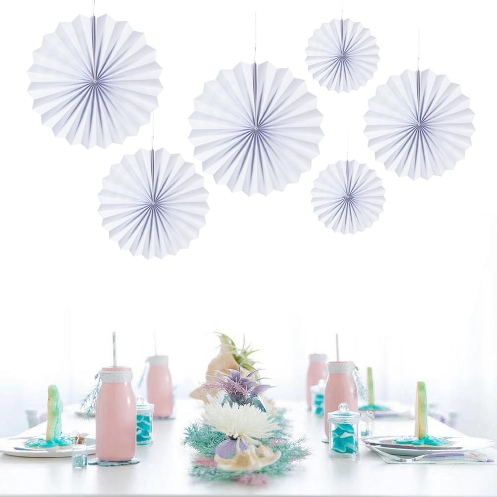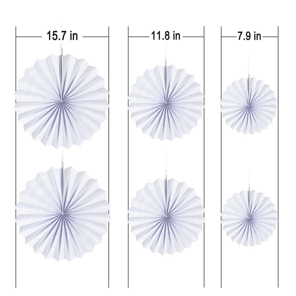 White Paper Fans Decoration 6pc craft blue paper fans on both sides of paper, 3 different sizes measuring 15.7'' /11.8'' / 7.9'' in diameter