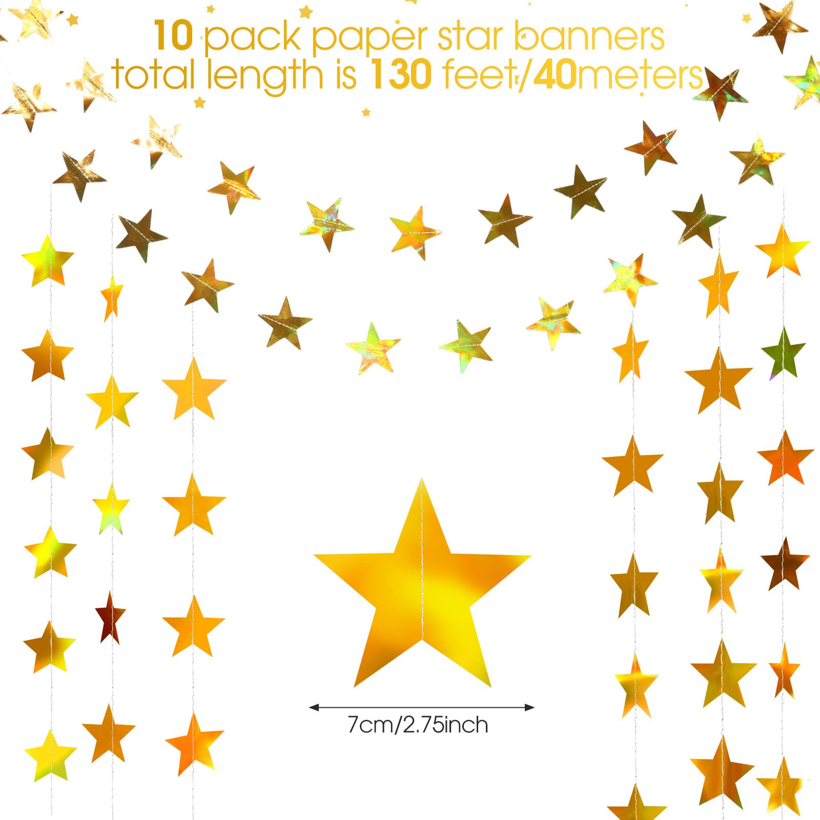 Package includes: 10 x star paper garlands, each garland is 13 feet/ 4 meters long, total length is 130 feet/ 40 meters; Enough quantity can reach your party decoration needs