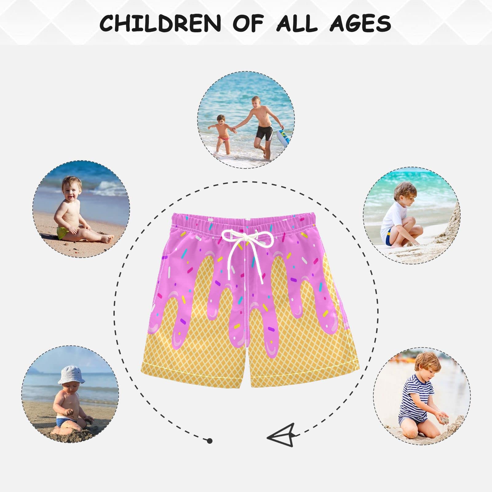 3.Mesh Lining&Pocket Design:Absorbs sweat and Dry Quickly.Beach shorts won't stick to your skin because of mesh liner,so you can play in the sea more comfortably.Also,the toddler boys swim trunk has 2 side seam pockets,give plenty of options for storage.