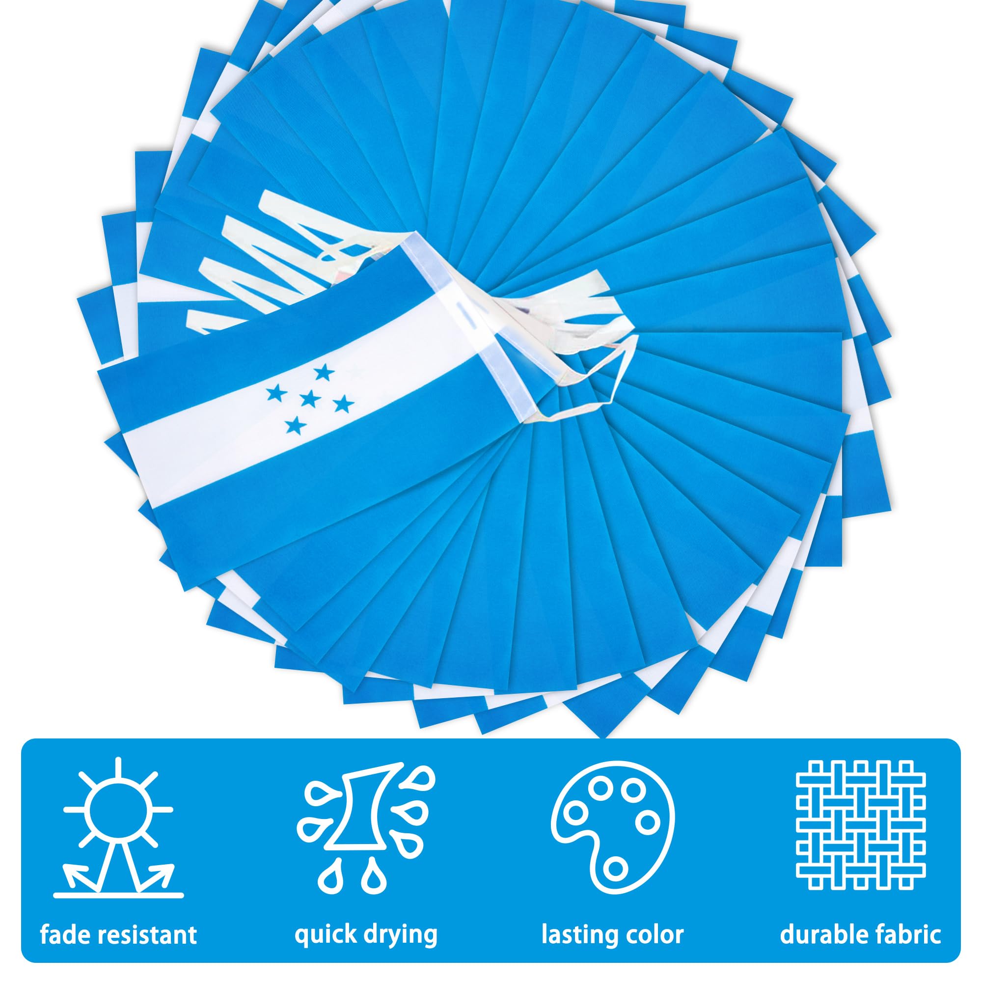 【Specifications】Each string is approximately 33 feet long. Includes 30 pcs Honduran flags. Each flag is approximately 5.5 in wide and 8.2 in long.