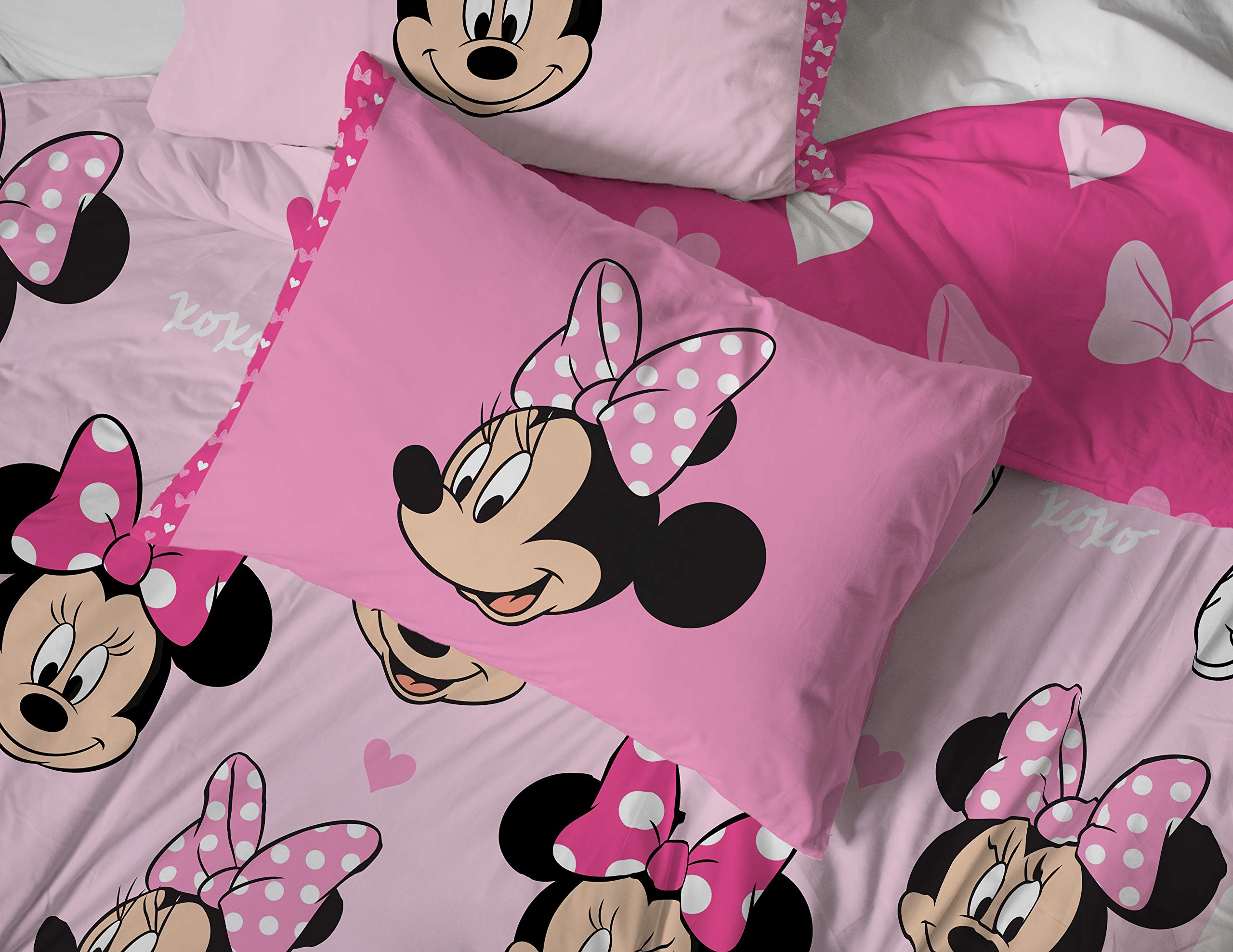 PERFECT FIT & FUN DESIGN - This Minnie Mouse full bed set includes (1) 76 inch x 86 inch full comforter, (1) fitted sheet 54 inch x 75 inch, (1) flat sheet 81 inch x 96 inch, and (2) standard pillow cases 20 inch x 30 inch. Add a touch of decorative enchantment to your room with our fashionable and super soft Disney Minnie Mouse Bed Set.