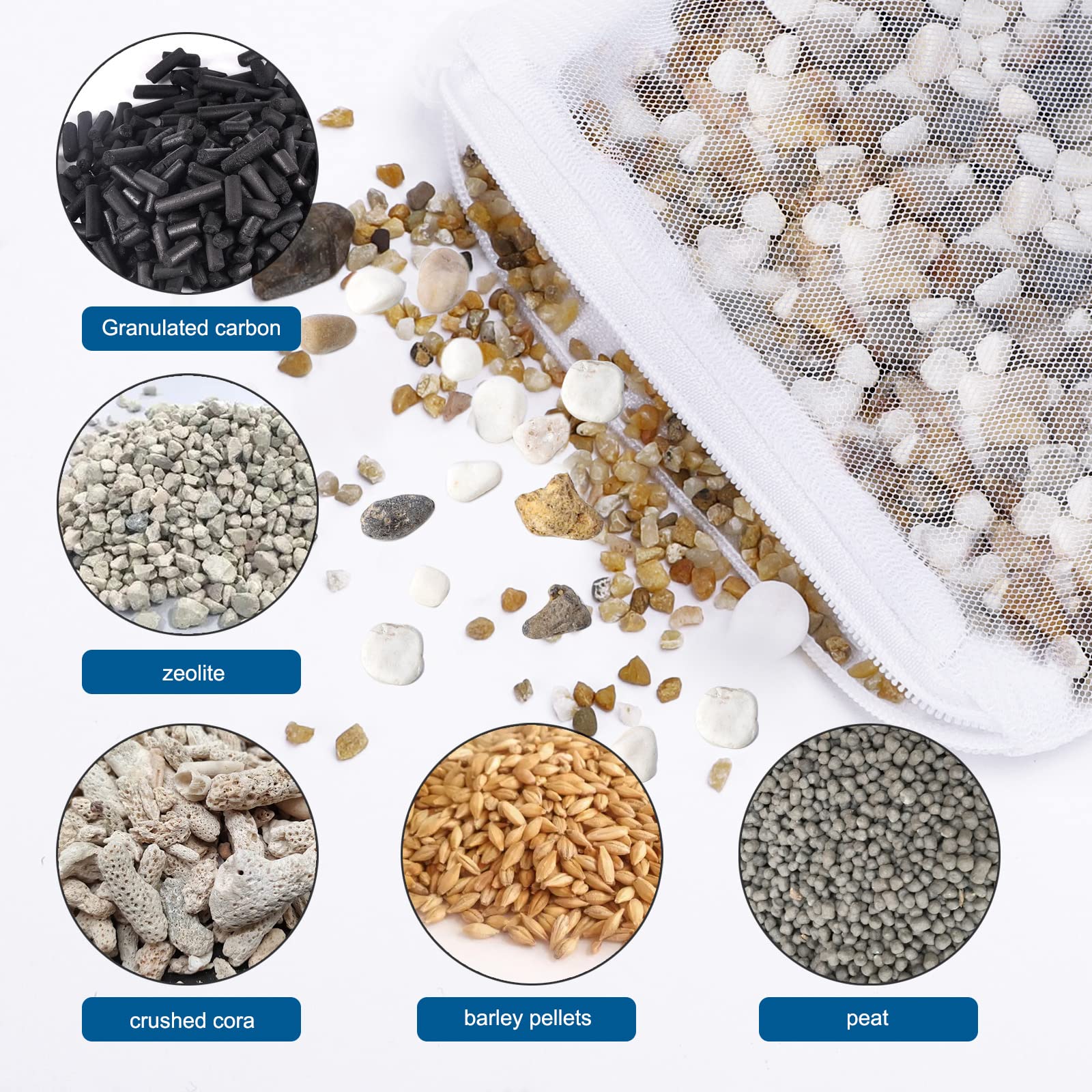 These unique mesh filter bags are easy to fill and empty with top zipper design to keep filter media secure. Our bags are durable, washable, and can be reused.