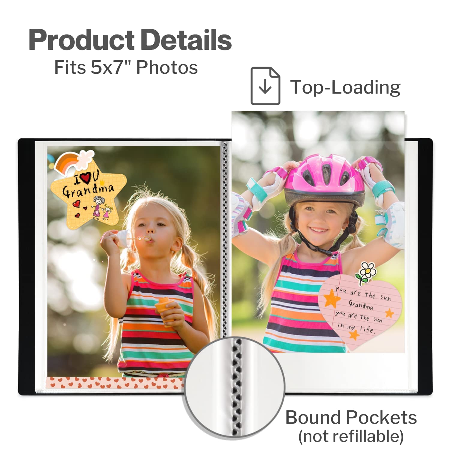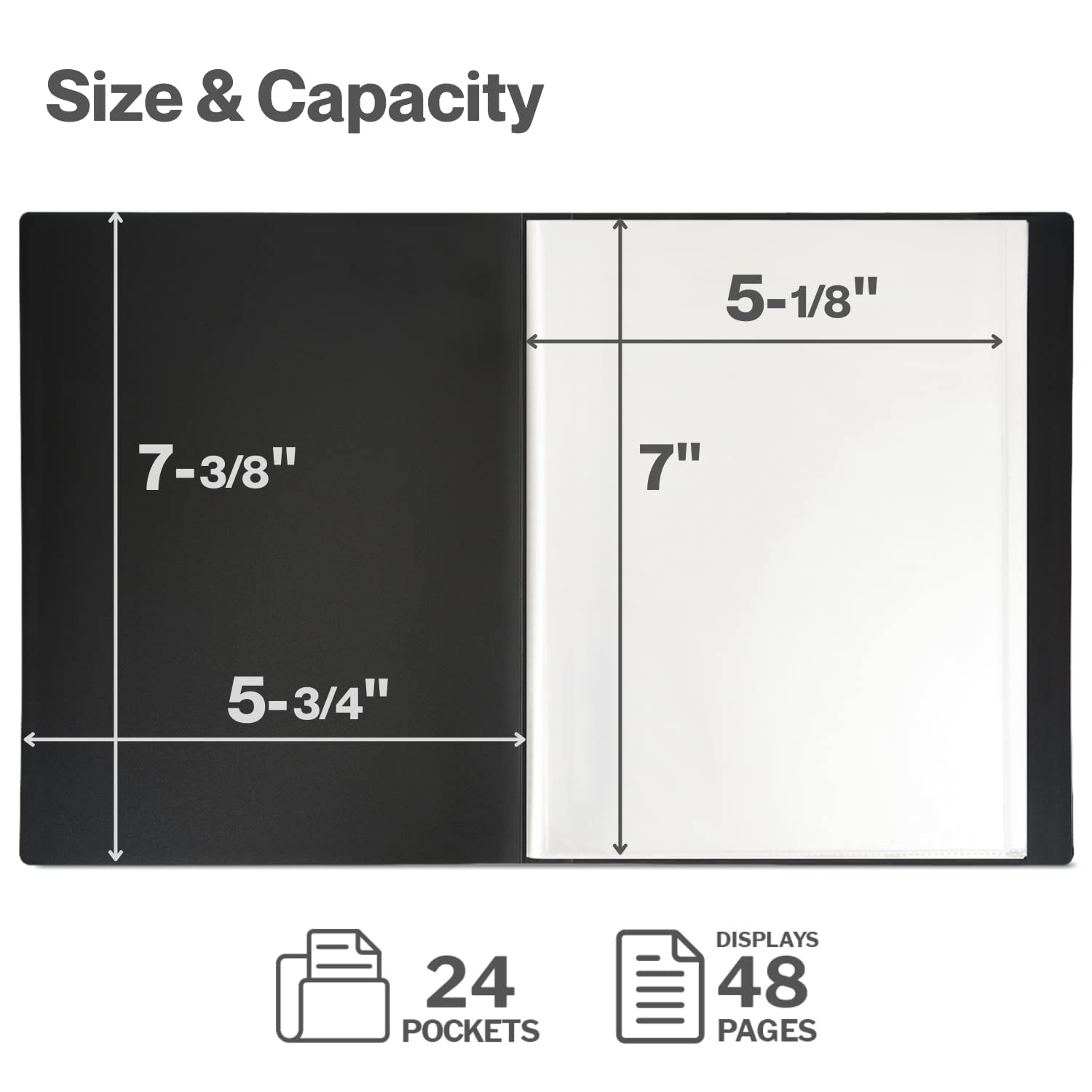 Compact Size: Portable photobook measures 7-3/8 x 5-3/4" with 24 bound (non-refillable), top-loading poly pockets to display 48 photos. Photo album with pockets or post card album holder.