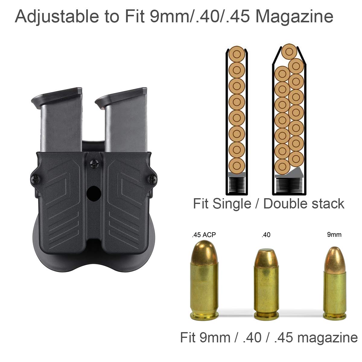 Resizable with Tool-free: This feature allows this double magazine pouch to fit many 9mm/10mm/.40/.45 Double Stack & Single Stack magazines for Glock/Sig sauer/S&W/Beretta/Taurus/H&K Pistol Mags, while keep your mags locked and tight with no movement. To make this simple adjustment, just tighten or loosen the screws with your hand on the middle of this double magazine holster.