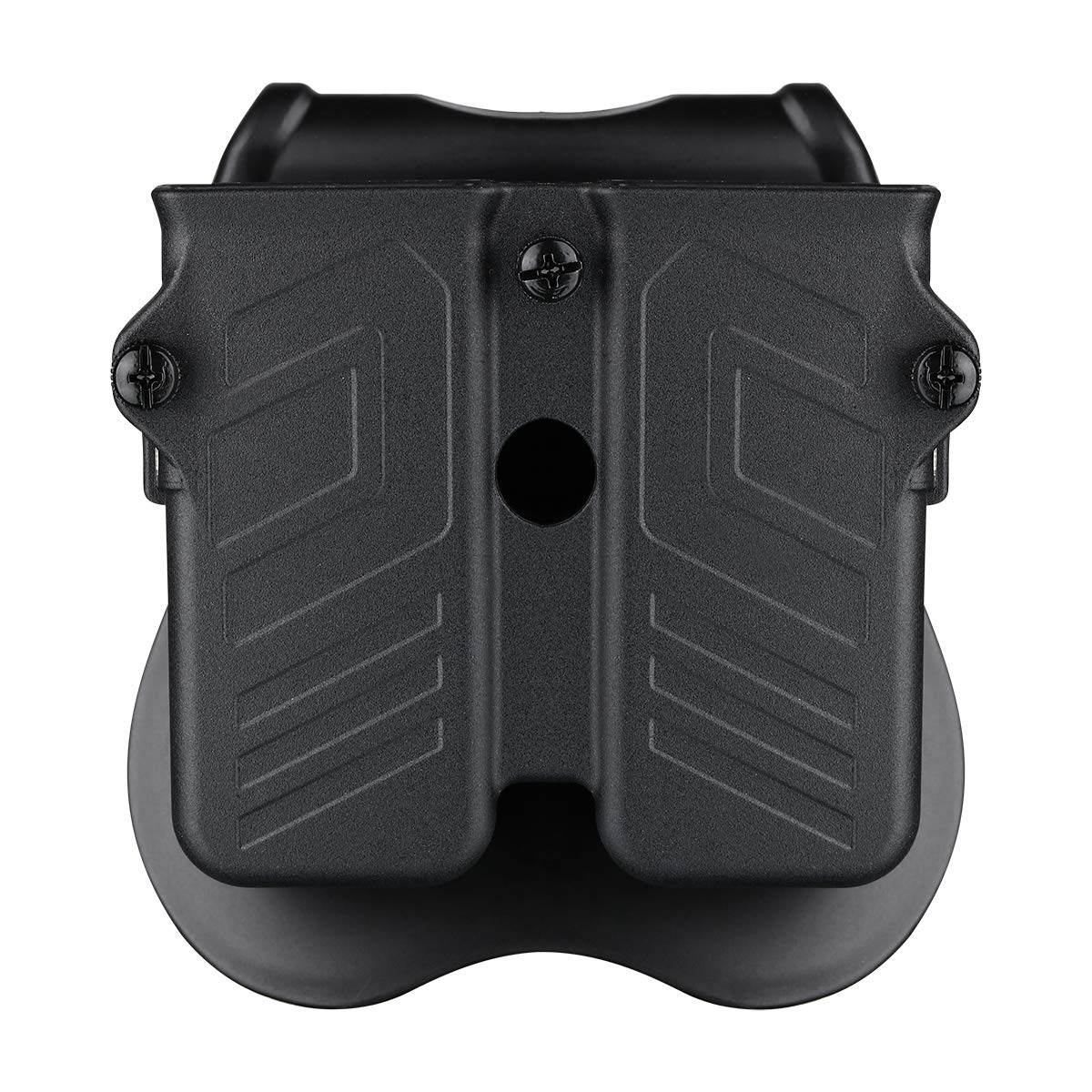 Swift Reloads: With 360° angle adjustment paddle and open-top design, it allows you to access this double mag holder easiy. And the paddle allows you to quickly put this double magazine carrier on/off as needed and is EXTREMELY secure.