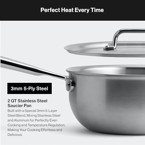 PREMIUM 5-PLY COOKWARE: Elevate your culinary skills with Misen's 1.5-Quart Saucier Pan, a versatile addition to your Misen Kitchen. Crafted from 5-Ply Stainless Steel, this Misen sauce pan is compatible with gas, electric, and induction cooktops, and boasts a thick bottom for even heating. The ingenious curved bottom prevents food from getting stuck or burning which happens with more common pots.