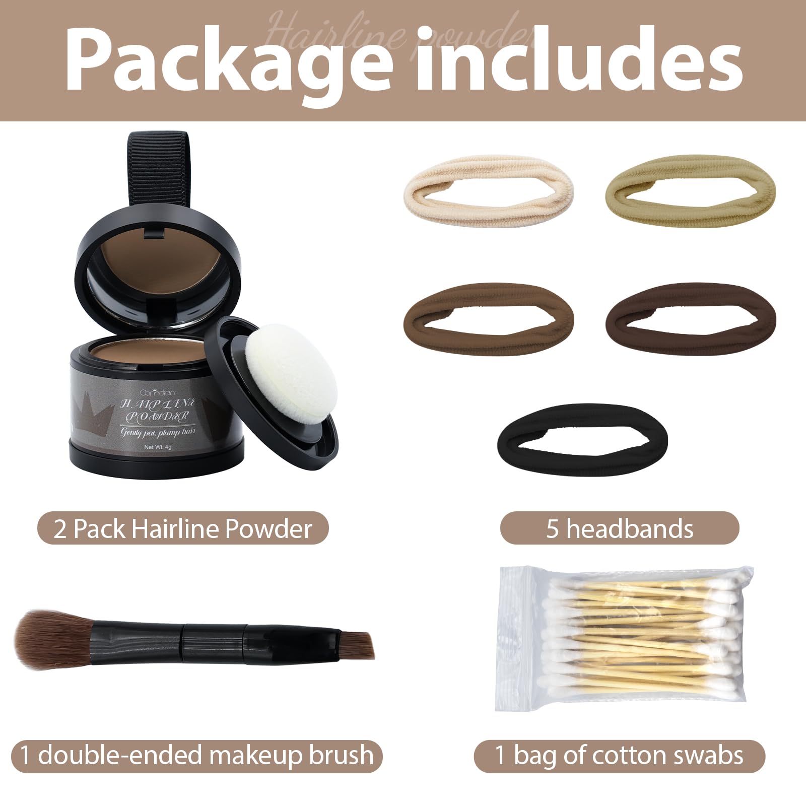 Value Package: Our set not only contains two bottles of high-quality hairline powder, but also carefully prepared five fashionable rubber bands, a practical ended makeup brush and a bag of cotton swabs for you. Double the powder means double the beauty and convenience