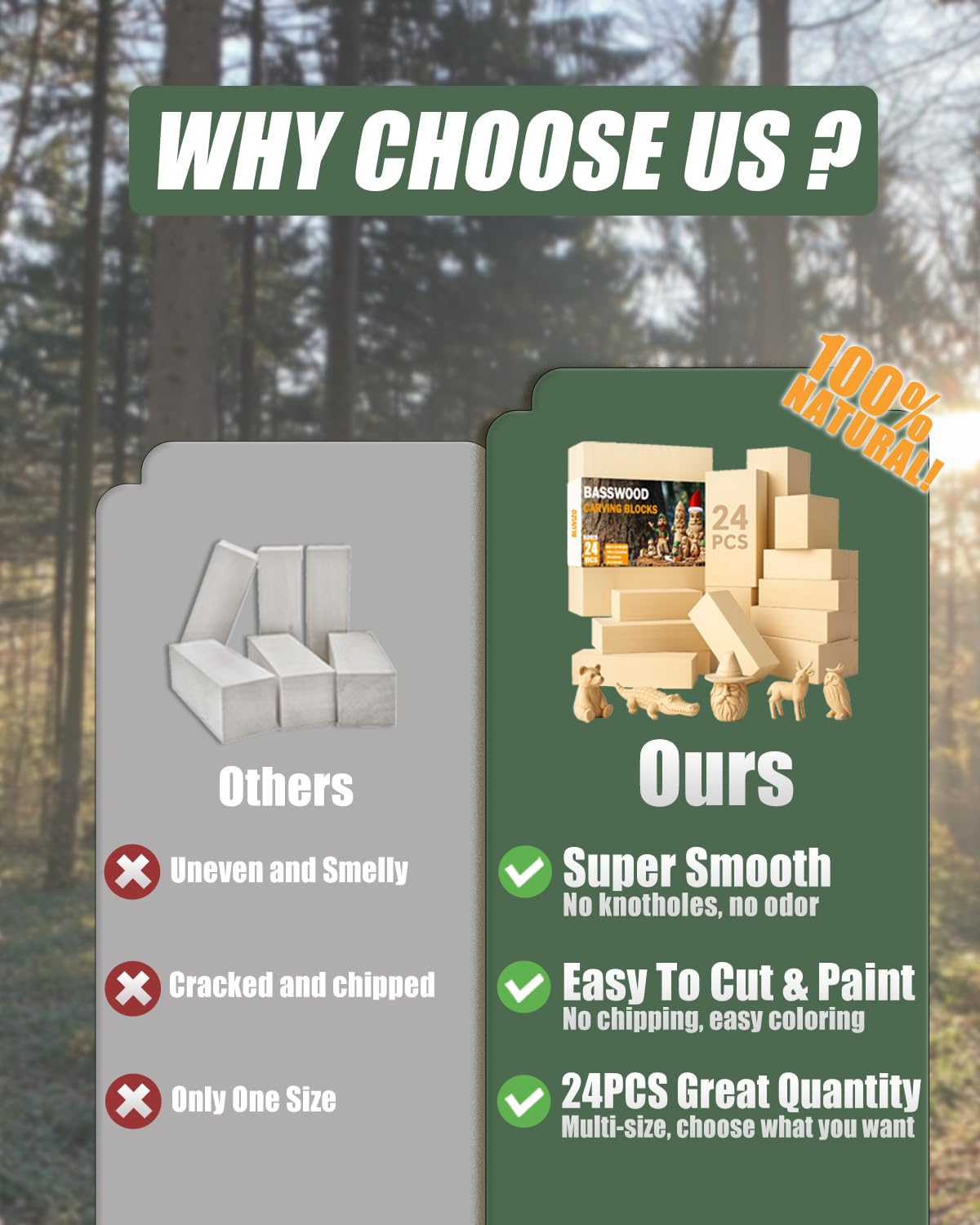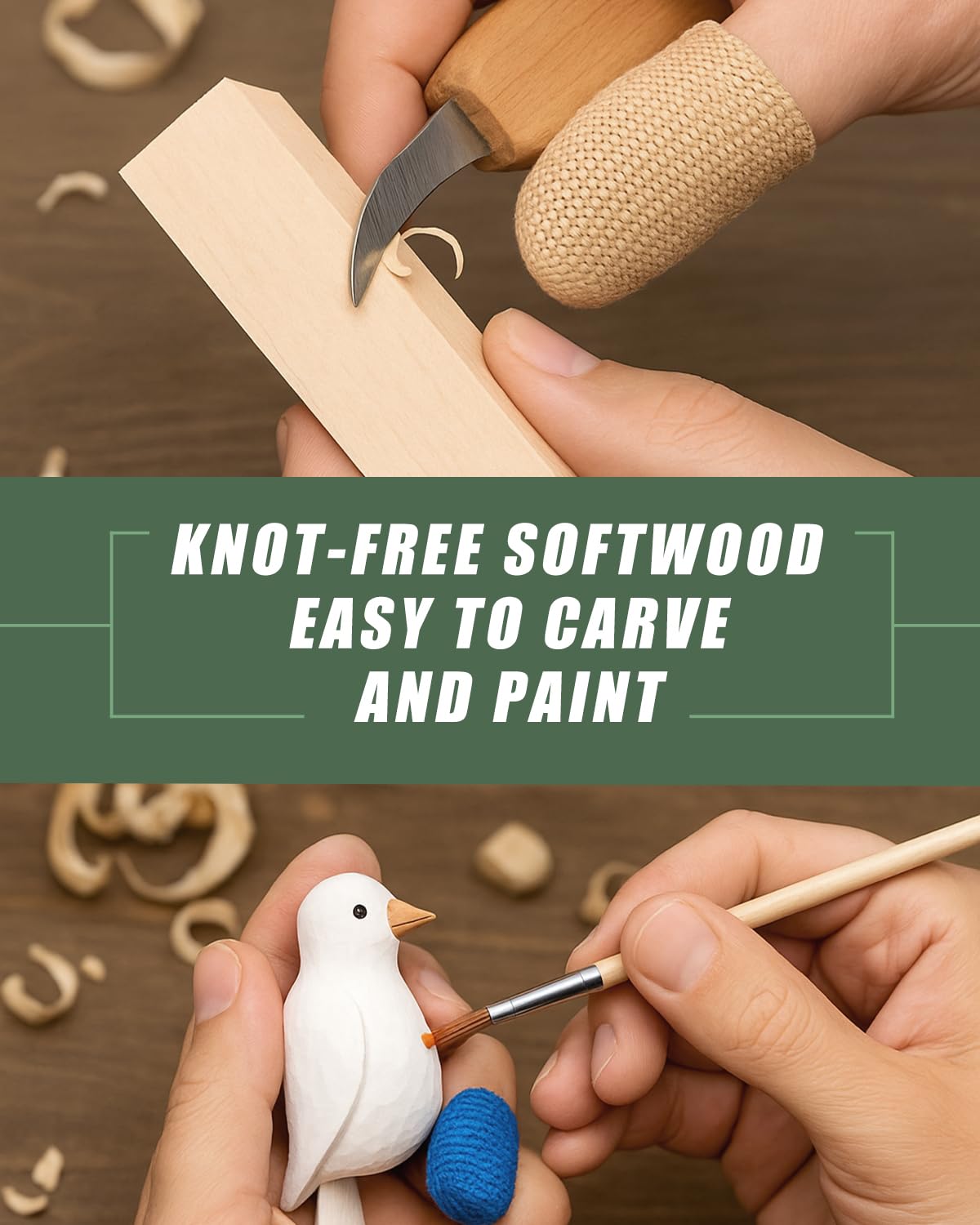 [Premium Basswood Quality] Crafted from 100% natural, hand-selected basswood, these blocks are soft, smooth, and free of cracks, knots, or splinters. The fine, even texture lets you carve, paint, and sand with ease—perfect for both beginners and pros.