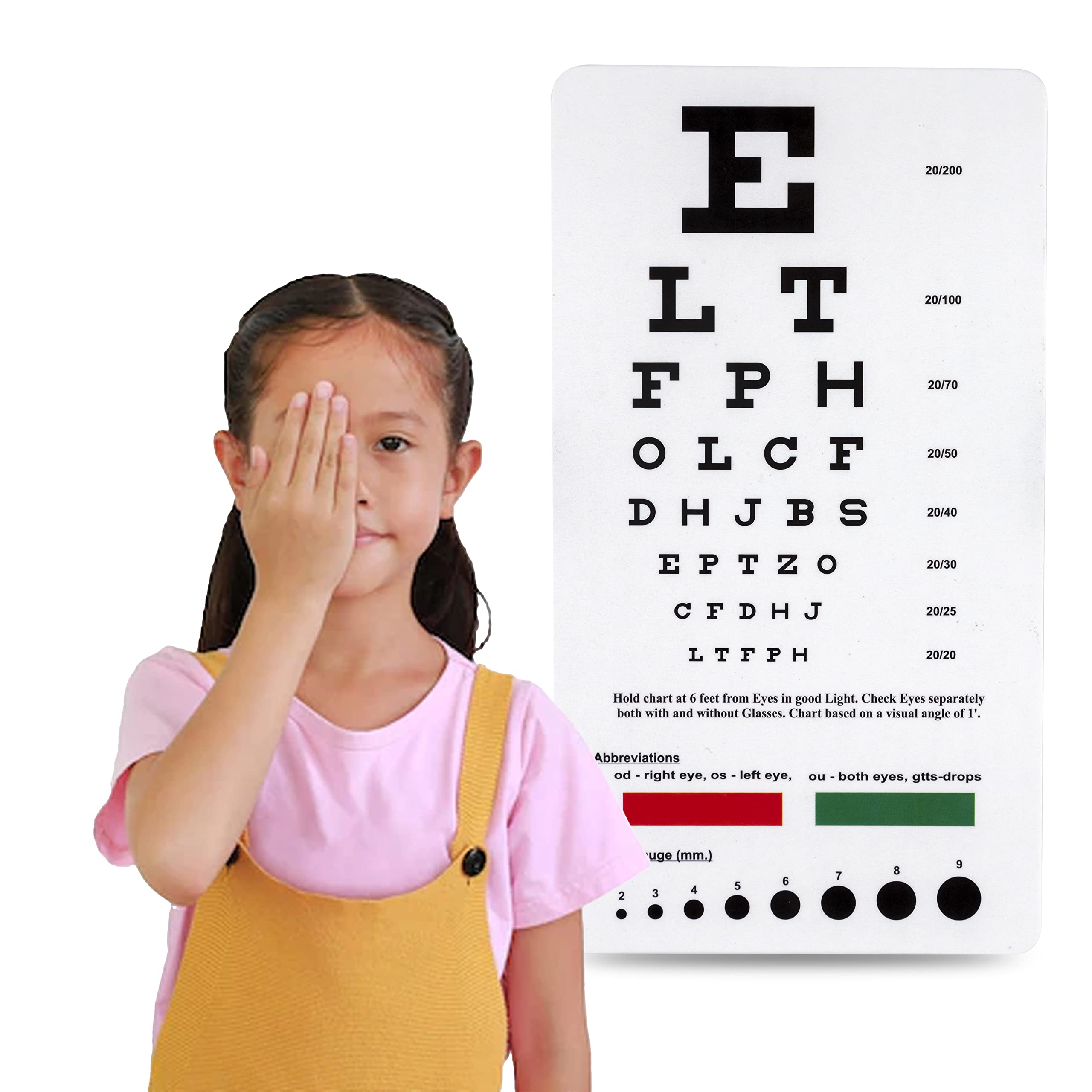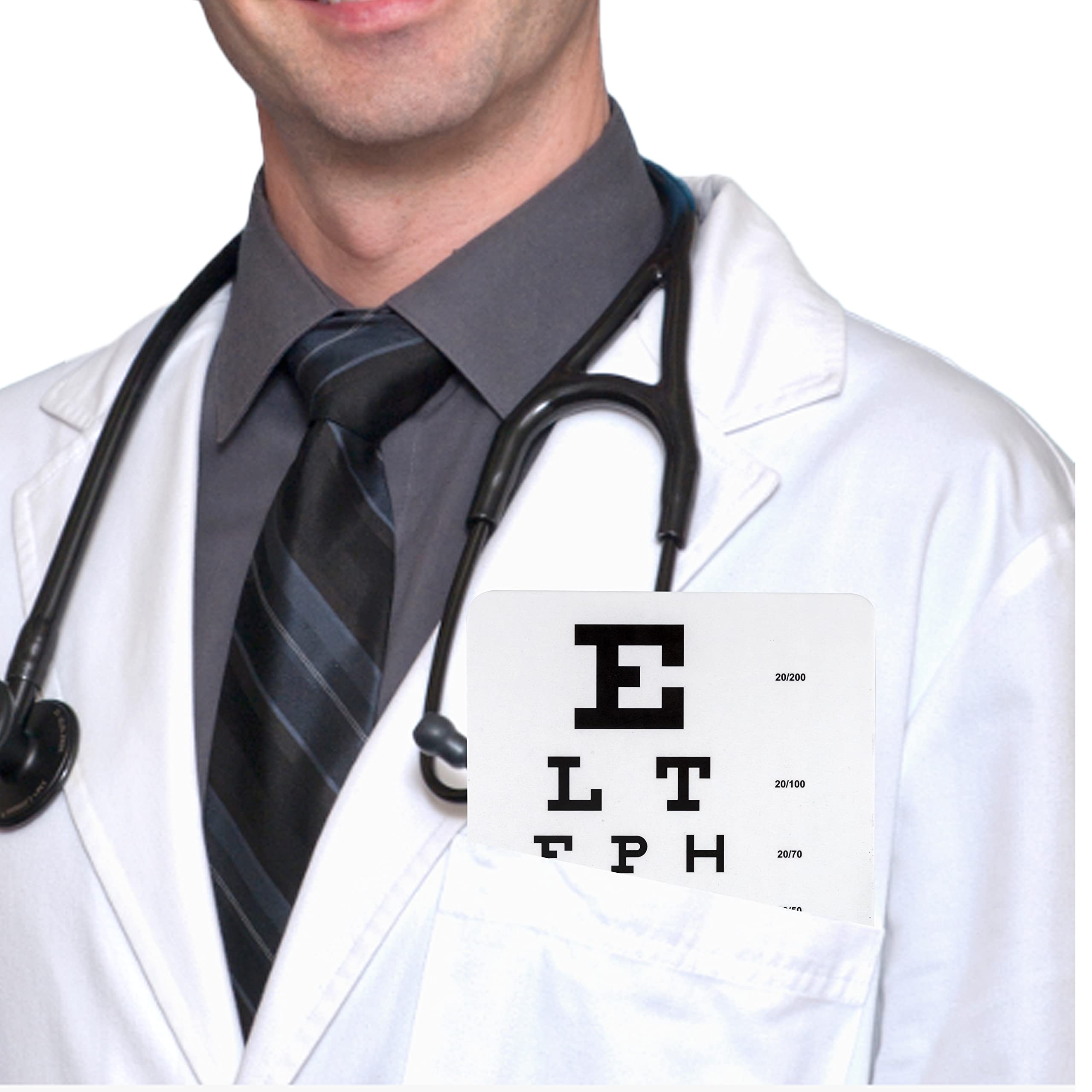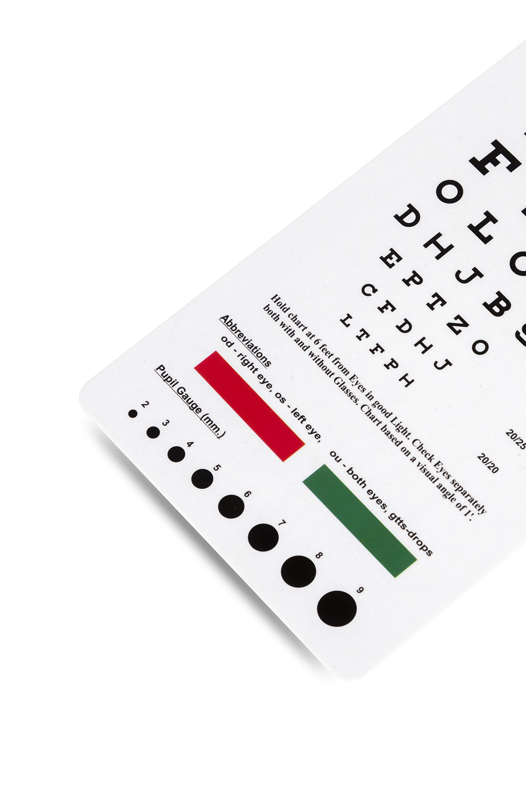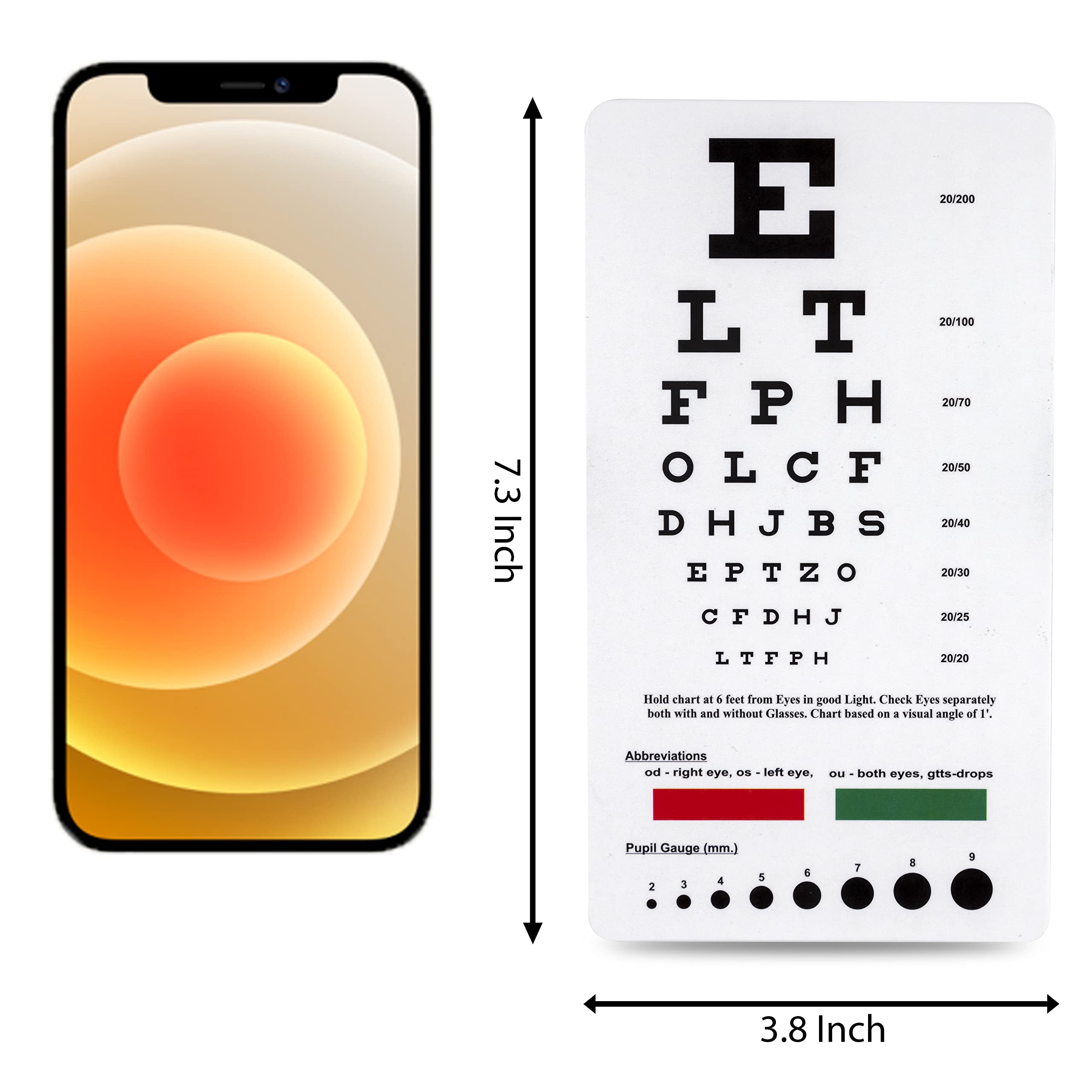 Handy pocket-sized eye chart. Easy clean plastic is sanitizable. Ruler on back with inches and centimeters.