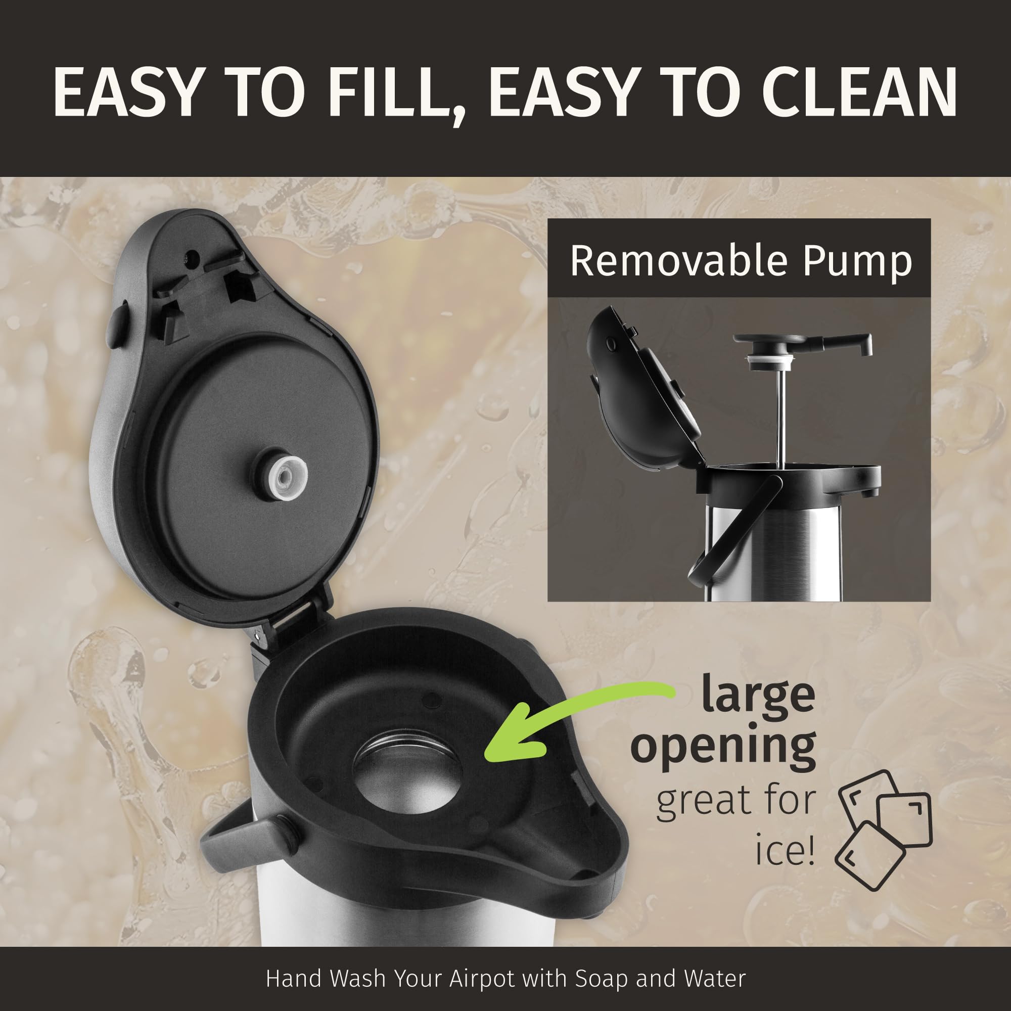Simple Cleaning & Filling Coffee Urn: Large mouth opening for easy filling and cleaning; removable top for quick access, making maintenance straightforward on the large coffee carafe