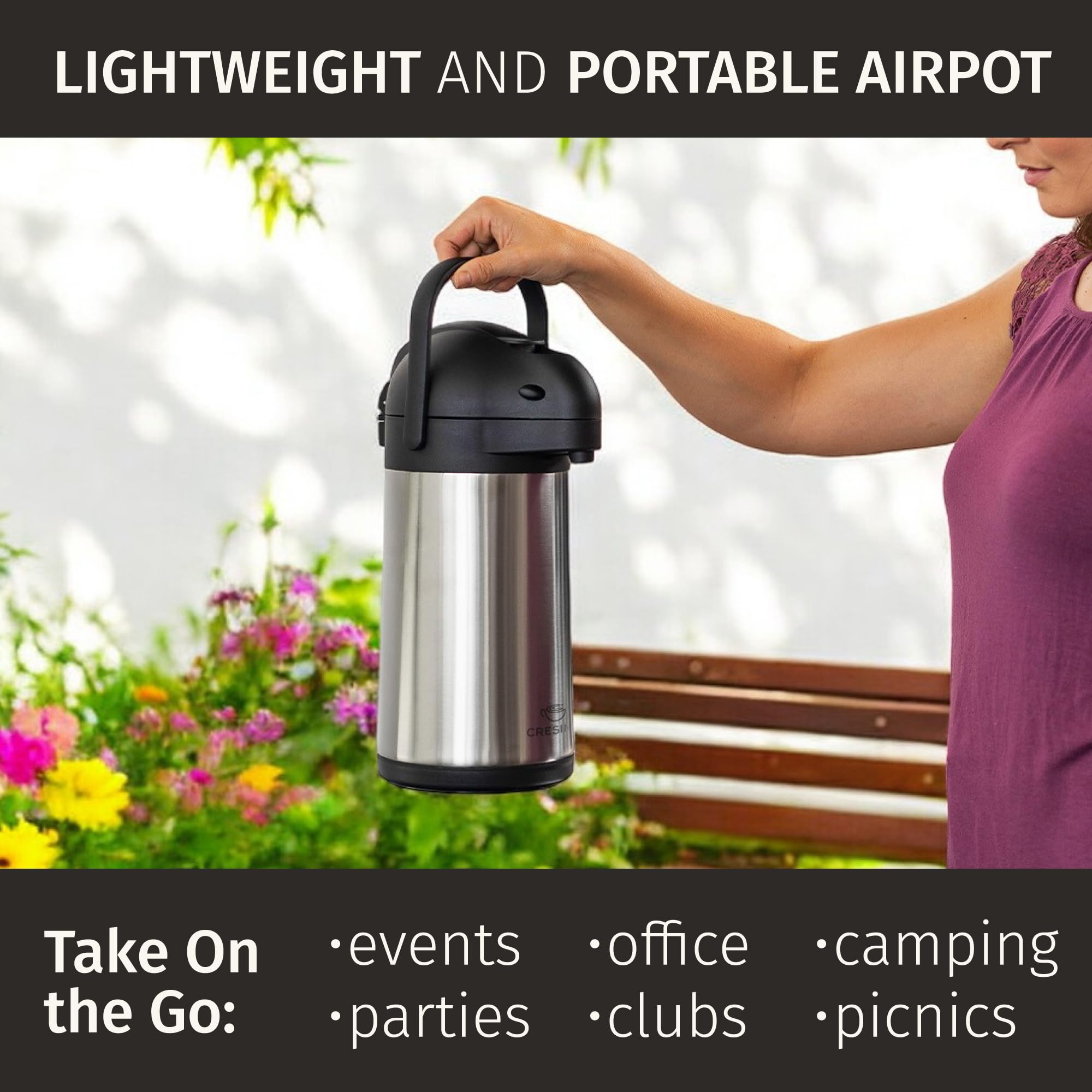 Fresh All Day Hot Coffee Dispenser: Holds 2.2 liters, enough for nearly 13 servings of 6oz coffee; ideal for road trips, meetings, and events where large quantities of hot or cold drinks are needed. You'll love this stainless steel carafe