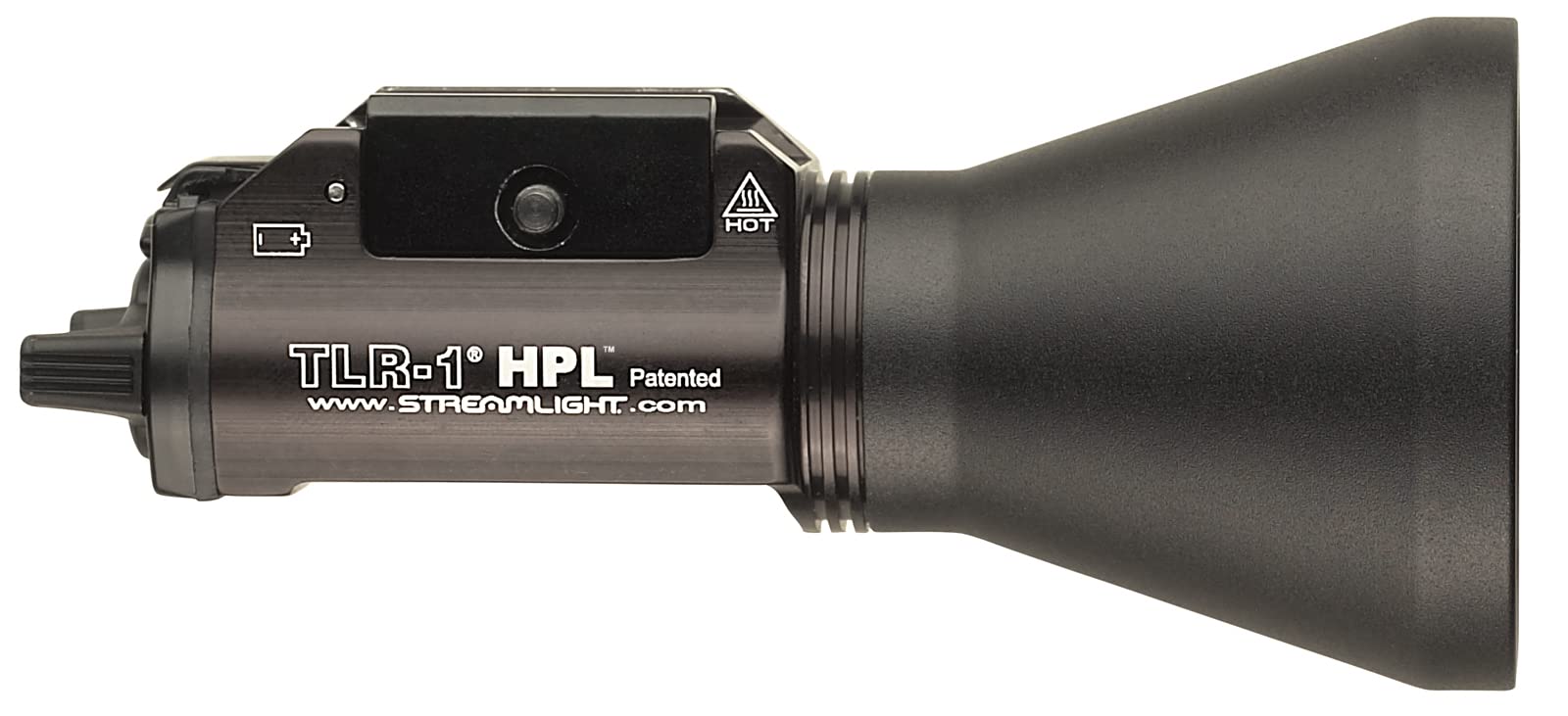 Product Description Long range, high lumen lithium battery powered Gun-Mounted Tactical Light featuring the latest in shock-proof high power LED technology and providing 1.5 hours of run time. Tethered battery door and latch mechanism prevents battery door loss while providing easy battery replacement. Rail clamp designed to rapidly attach/detach from side of weapon. When enabled, strobe activated on two or more momentary paddle hits. Models available with either standard door switch or remote door switch. Mounts directly to all MIL-STD-1913 (Picatinny) rails and weapons with Glock-style rails. Includes rail locating keys for mounting to a variety of rails. Available with either standard door switch or remote door switch. Standard Switch: Ambidextrous momentary/steady On-Off. Remote Switch: Momentary/steady On-Off and port plug for remote switch assembly. Deep dish parabolic reflector produces long-range targeting beam with optimum peripheral illumination. Durable anodized aluminum construction. Unbreakable polycarbonate lens with scratch-resistant coating. IPX7 rated design; waterproof to 1 meter for 30 minutes. Serialized for positive identification. Powered by two CR123A lithium batteries (included). From the Manufacturer The TLR-1 HP series produce a long-range targeting beam that reaches 400+ meters! Long range, lithium battery powered Gun-Mounted Tactical Light featuring the latest in shock-proof power LED technology and providing 1.75 hours of continuous regulated run time. Rail clamp designed to rapidly attach/detach from side of weapon. Model with st and ard door switch. Tethered battery door and latch mechanism that prevents battery door loss while providing easy battery replacement. Strobe activated on two or more momentary paddle hits for guaranteed entry into strobe mode. Case made using 6000 series machined aircraft aluminum with black anodized finish. Unbreakable polycarbonate lens with scratch-resistant coating, O-ring sealed for water resistance. Features C4LED technology, impervious to shock with a 50,000 hour lifetime. 46,000 c and ela peak beam intensity and 200 lumens measured system output. Deep-dish parabolic reflector produces a long range targeting beam with optimum peripheral illumination. Includes keys for Glock-style, Picatinny, Beretta 90two, S and W 99 and S and W TSW. Extensively live-fire tested impact resistant construction. Serialized for positive identification.