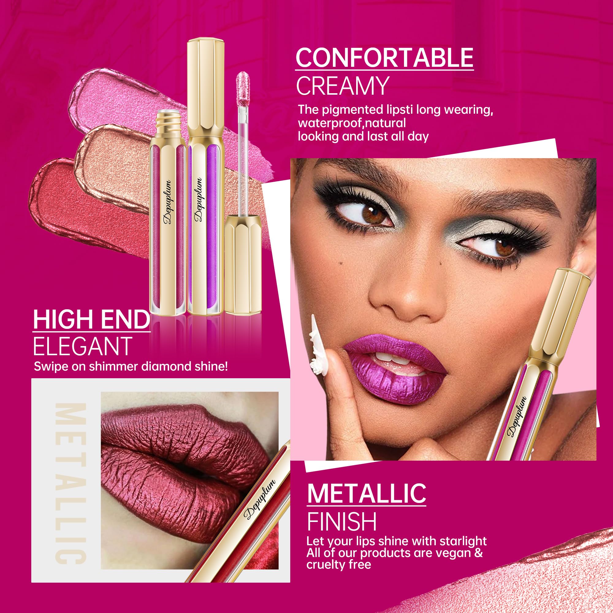 METAL LIQUID LIPSTICK WITH DUAL EFFECTS: Depuplum metallic shine lipstick delivers a lightweight and pigmented finish, creates two effects: a thin layer for shimmer payoff and a thick layer for bold metallic style