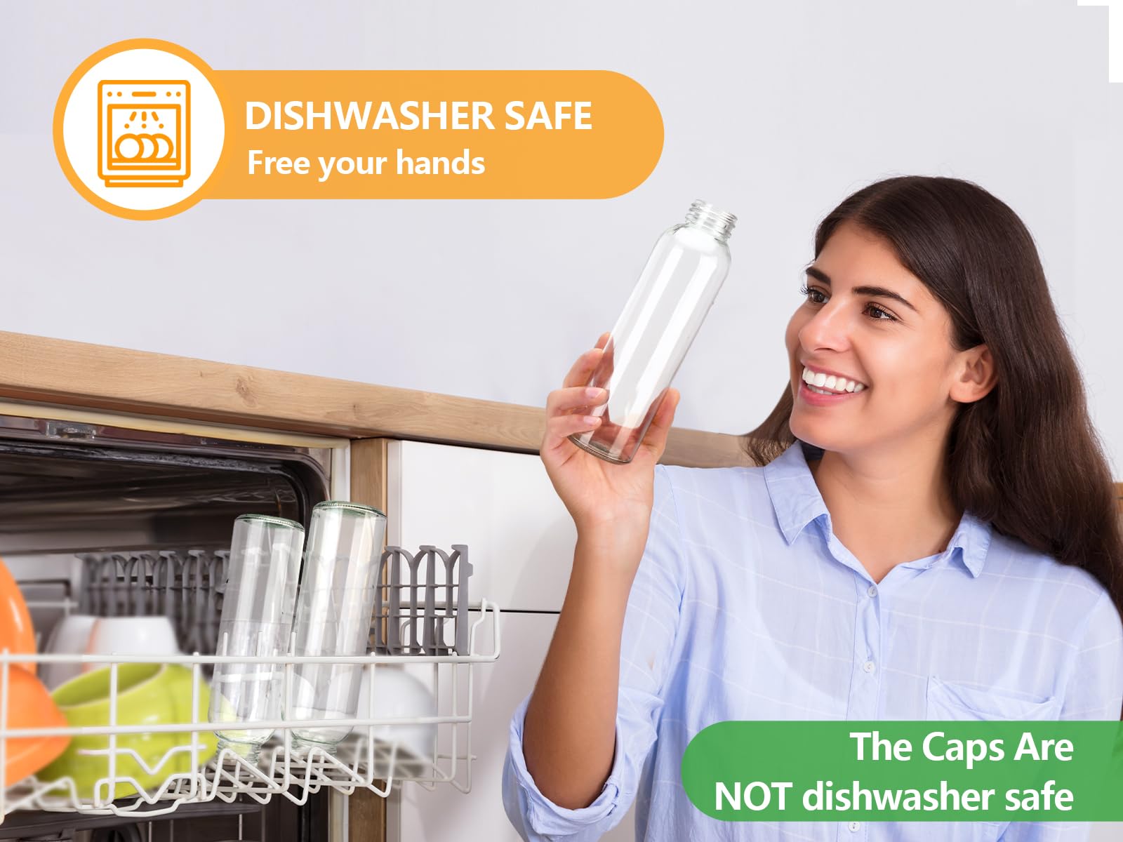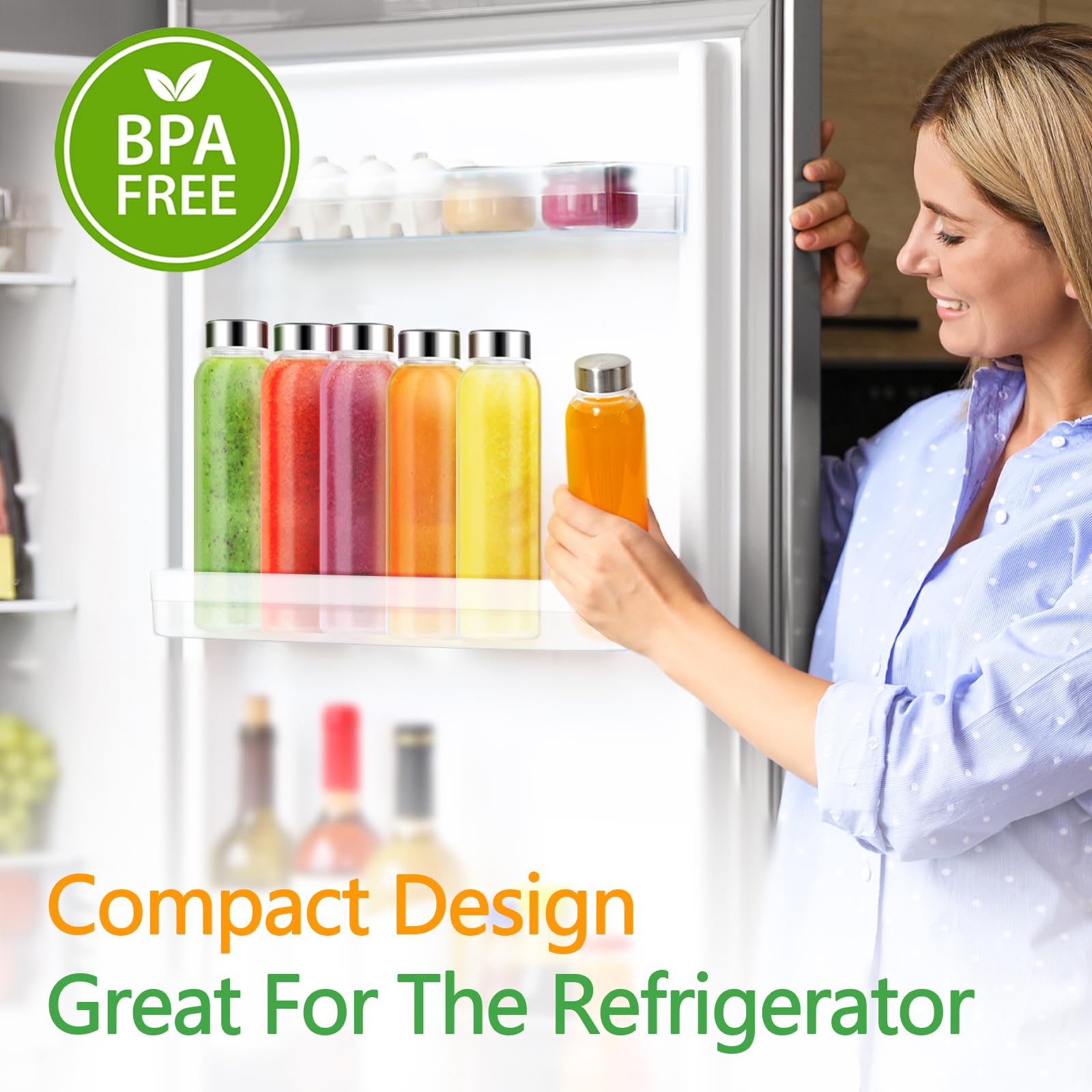 STAY HYDRATED WHEREVER YOU GO: The slim and portable design means you can take your glass juice bottles with cap everywhere, perfectly for garden parties, homemade drinks, weddings, picnics, school, work, gym, fitness, yoga and beach trips. Easily store in the fridge, lunch bag or car cup holder. These Zukro glass water bottles is dishwasher safe, easy to fill and clean