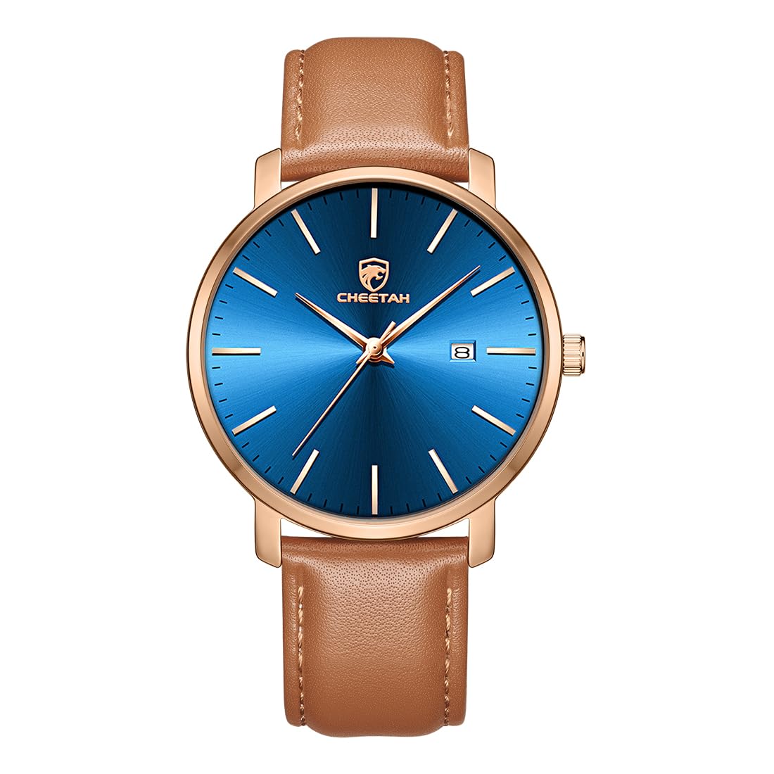 Unisex Fashion Wrist Watch: Classic and stylish black dial, elegant rose gold time marks and small date window. Fashion design suitable for men and women.