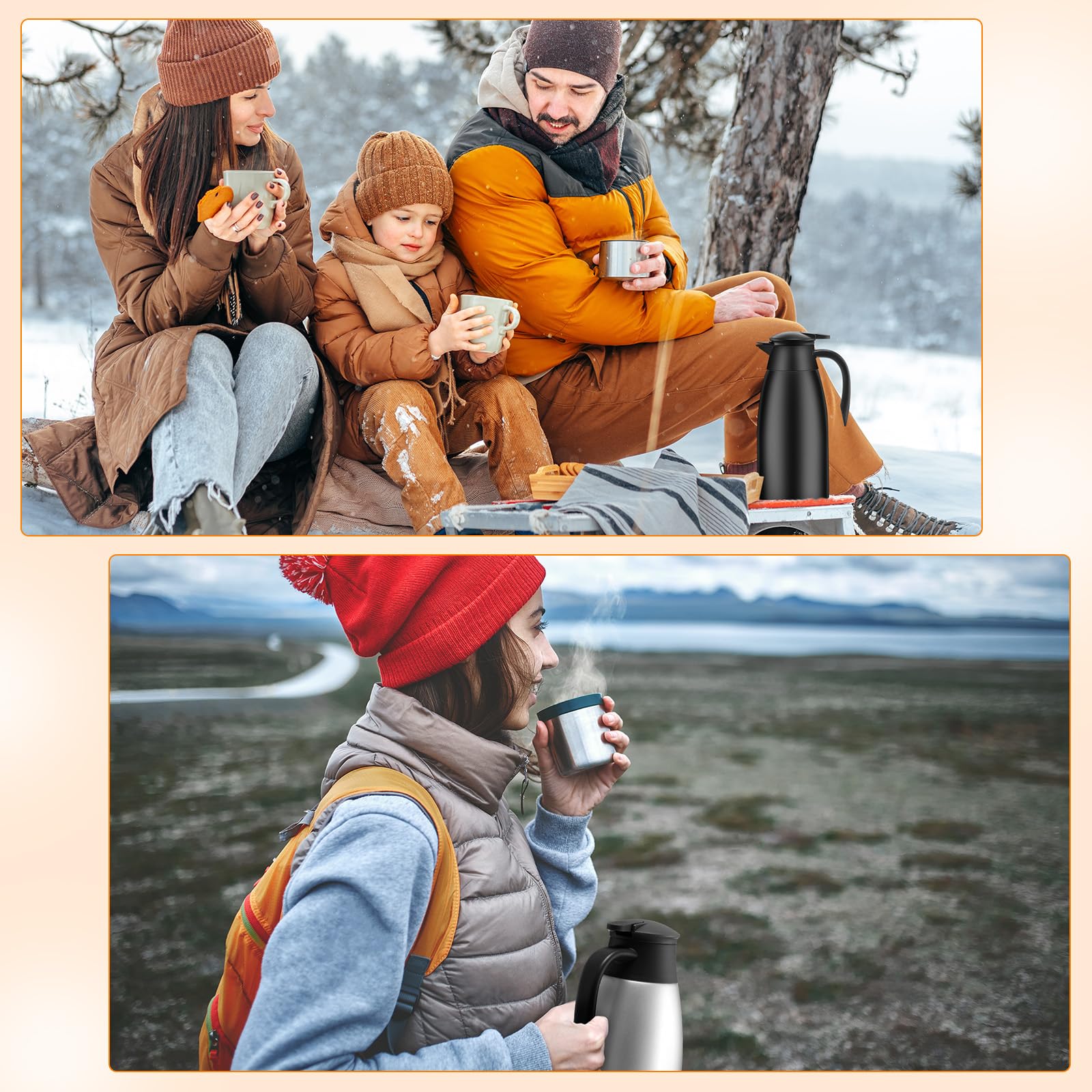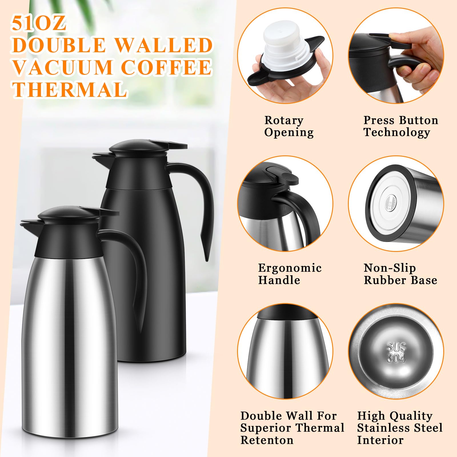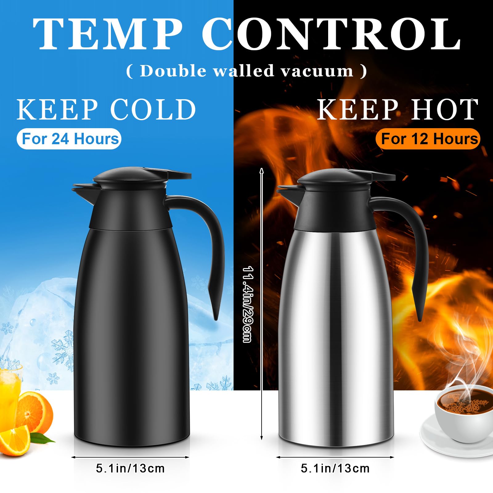 Thermal and Practical: the stainless steel coffee carafe features double walled vacuum insulation designs, and can keep your drinks hot for up to 12 hours and cold for up to 24 hours, and the lids can help to better keep the proper temperature, allowing you to enjoy them easily