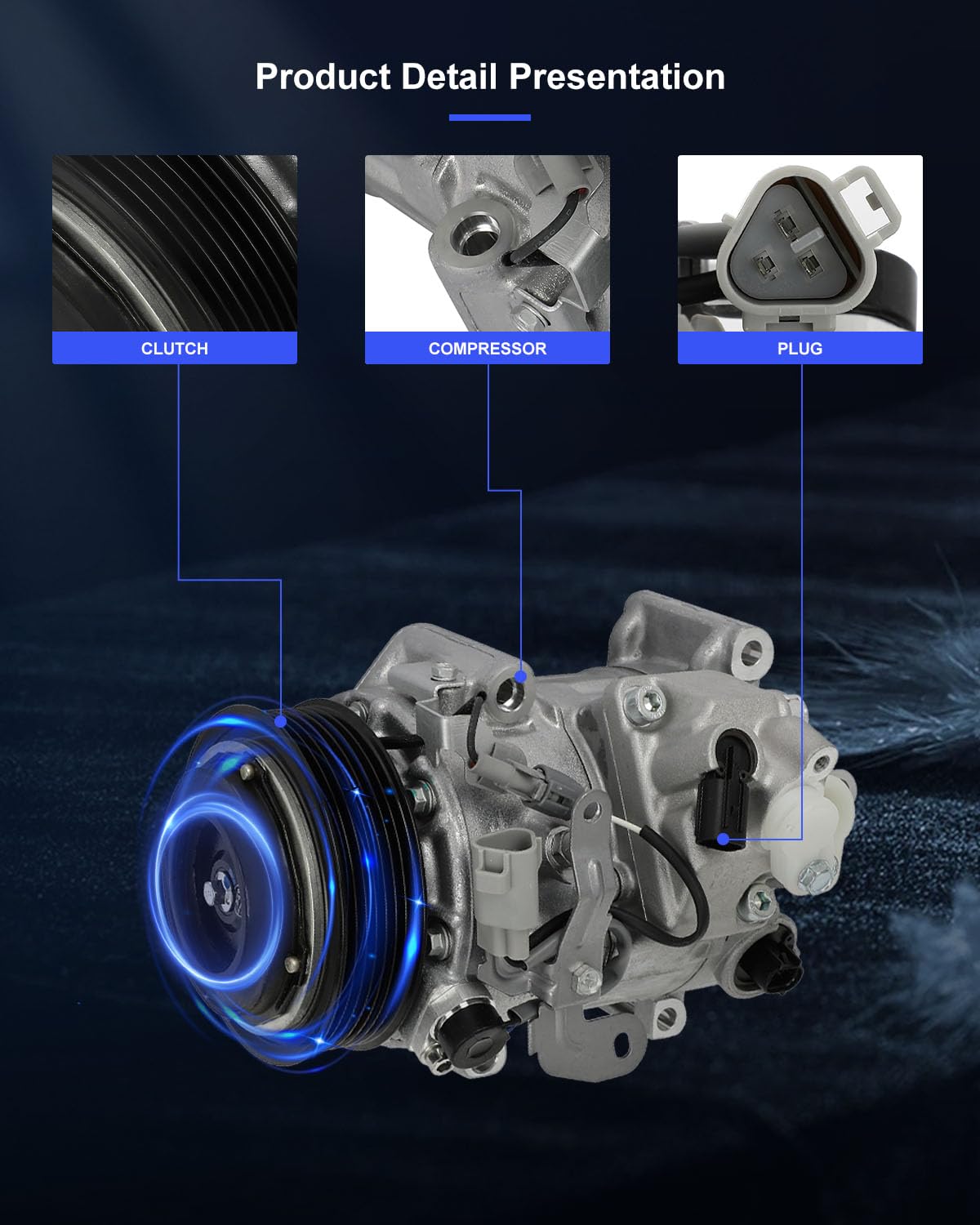 NOISELESS A/C COMPRESSOR PUMP FITMENT: 2013-2018 for Lexus for ES350 3.5L,2010-2015 for Lexus for RX350 3.5L,2013-2018 for Toyota for Avalon 3.5L,2012-2017 for Toyota for Camry 3.5L,2011-2013 for Toyota for Highlander 3.5L,2011-2016 for Toyota for Sienna 3.5L