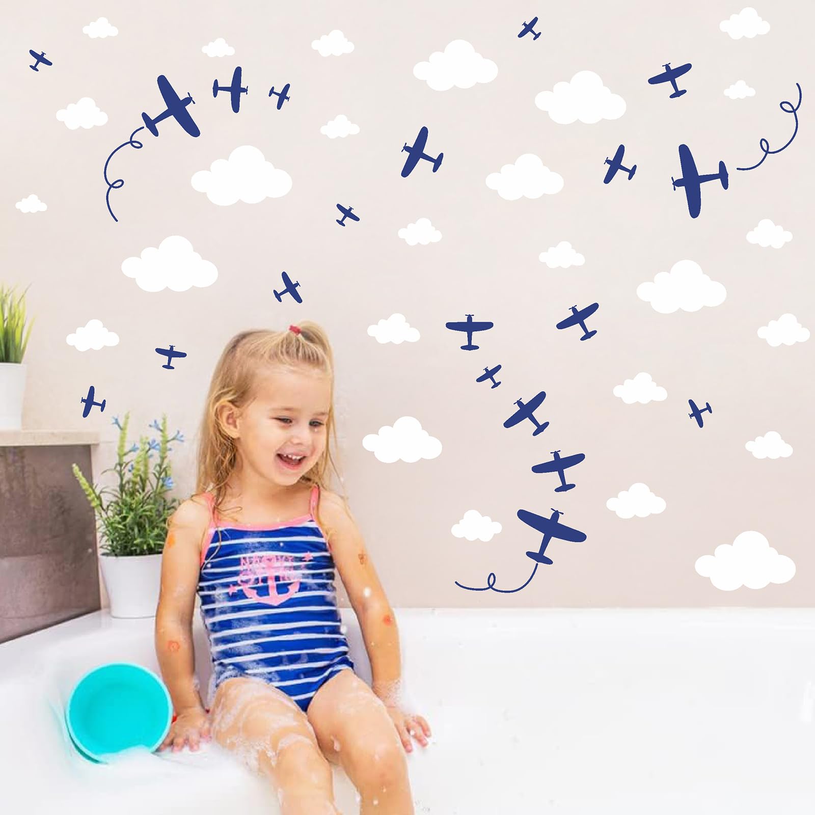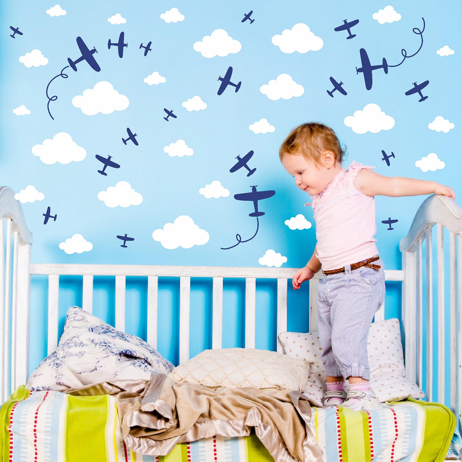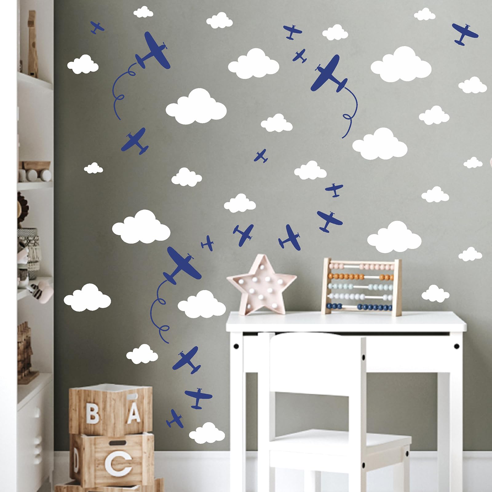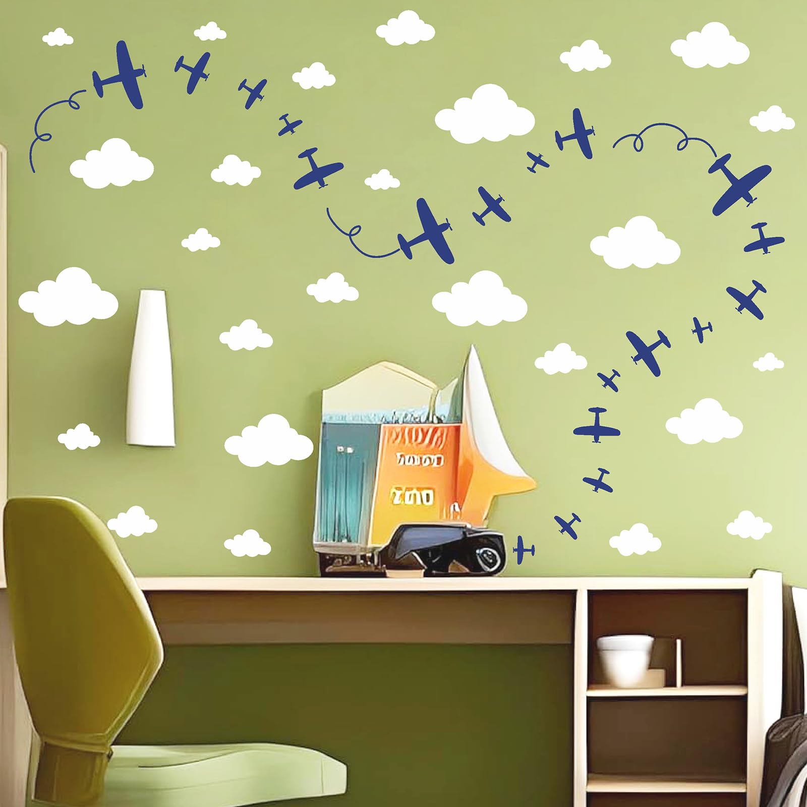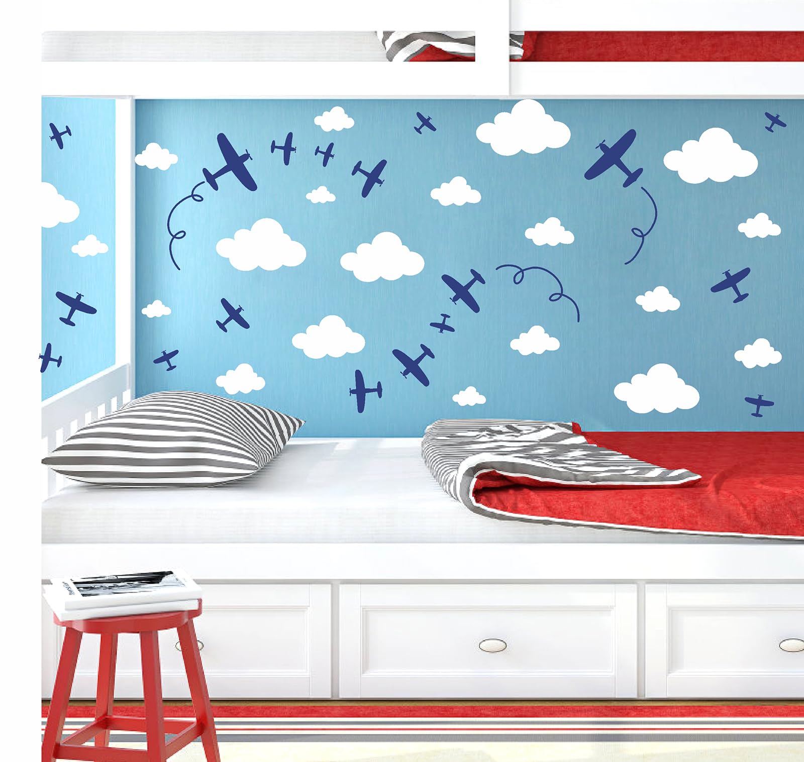 Plane Cloud Wall Decals are perfect for decorating kids room, bedroom, boys room, nursery, baby room, playroom, classroom, etc.