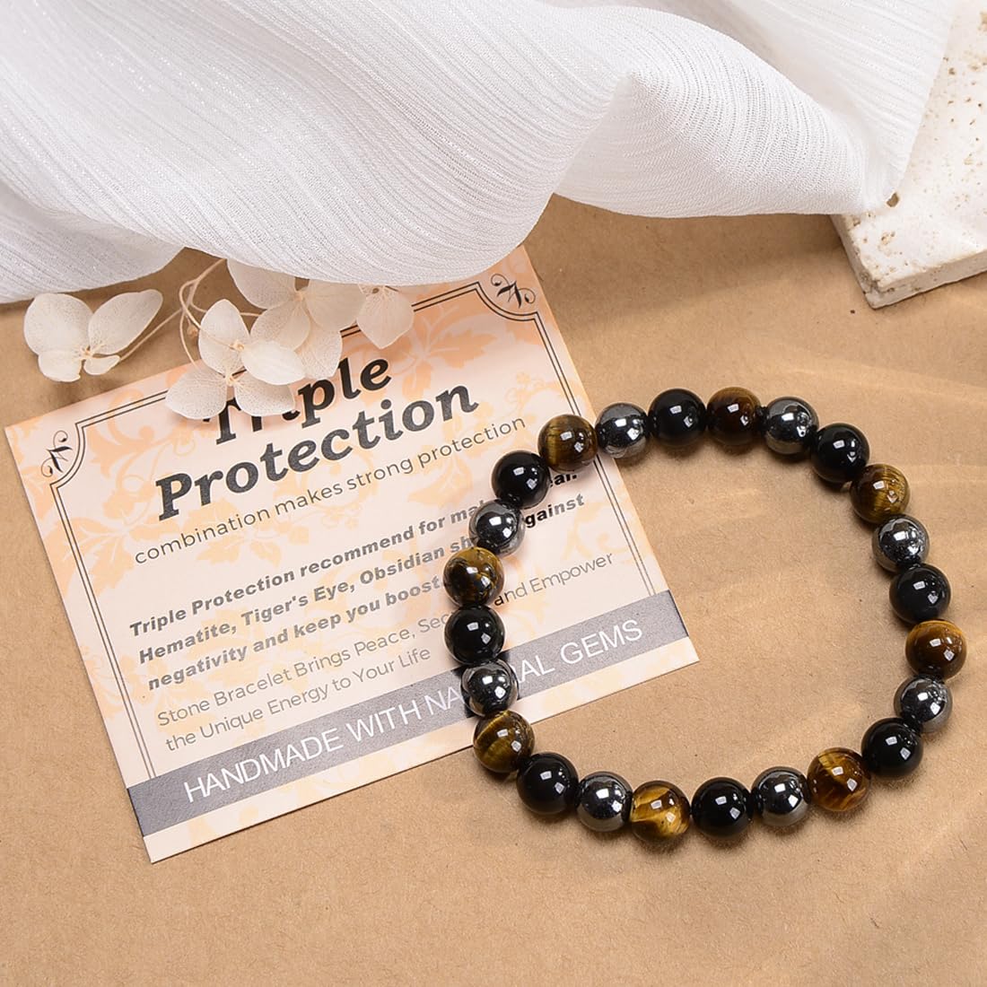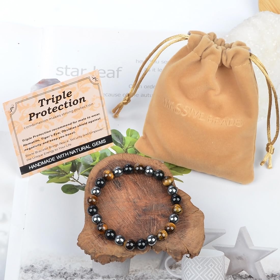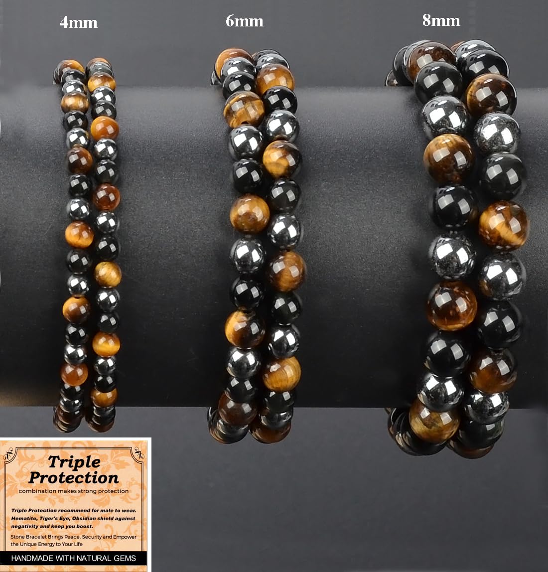 💝 [Makes Strong Protection]Triple Protection recommend for male to wear. Hematite, Tiger's Eye, Obsidian shield against negativity and keep you boost.