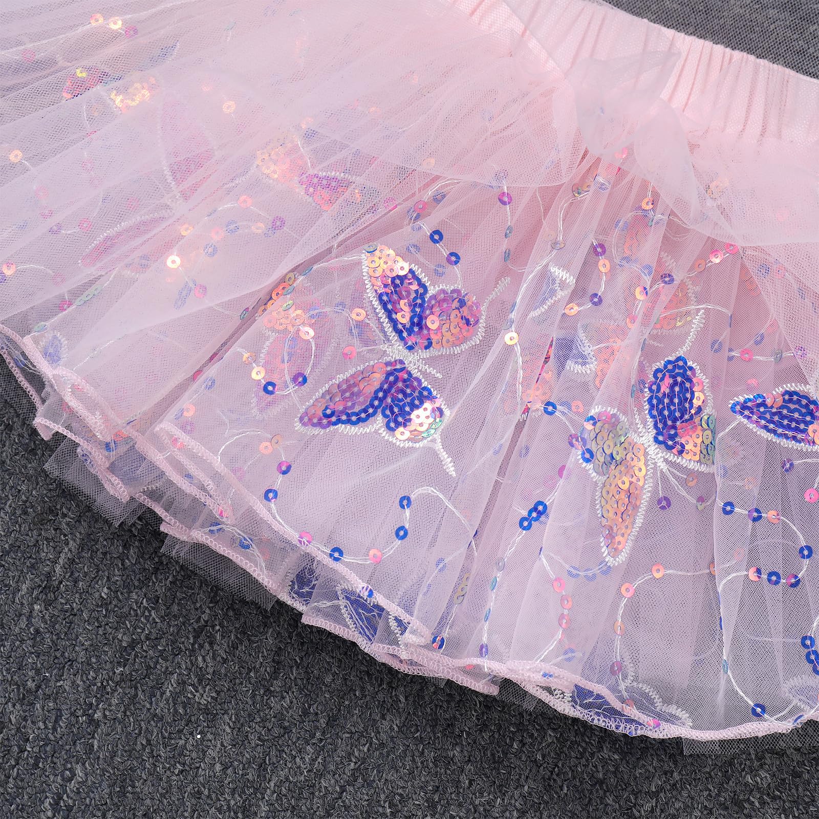 Sequins Butterfly Birthday Tulle Tutu Skirt: Butterfly first birthday outfit girl, sequins butterfly 1st birthday tutu outfit, pink butterfly bodysuit with bloomers tutu and headband headwear. Short ruffle tulle tutu skirt, total 6 layers, 1 layer sparkle sequins butterfly tulle under 1 layer soft tulle, 3 layers tulle and 1 layer lining, pretty and adorable. Pink, purple, blue color ruffle tulle, adds to a puffy butterfly dress up costume look. Perfect for your little ones first birthday!