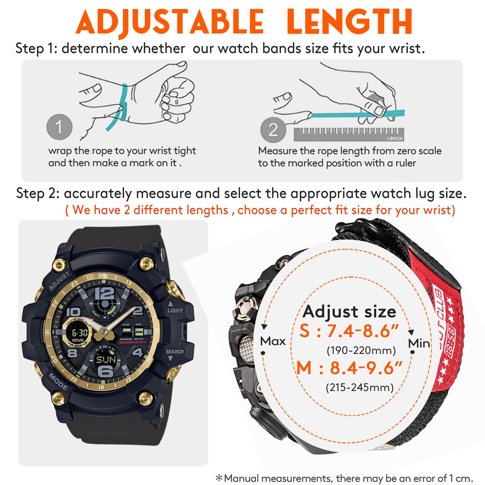 Nylon material: the strap is made of flexible, soft, high-quality nylon material. When worn, the skin-friendly nylon material conforms perfectly to the curve of the wrist. The soft nylon material is elastic at the wrist, close to the skin, breathable and comfortable to wear all year round.