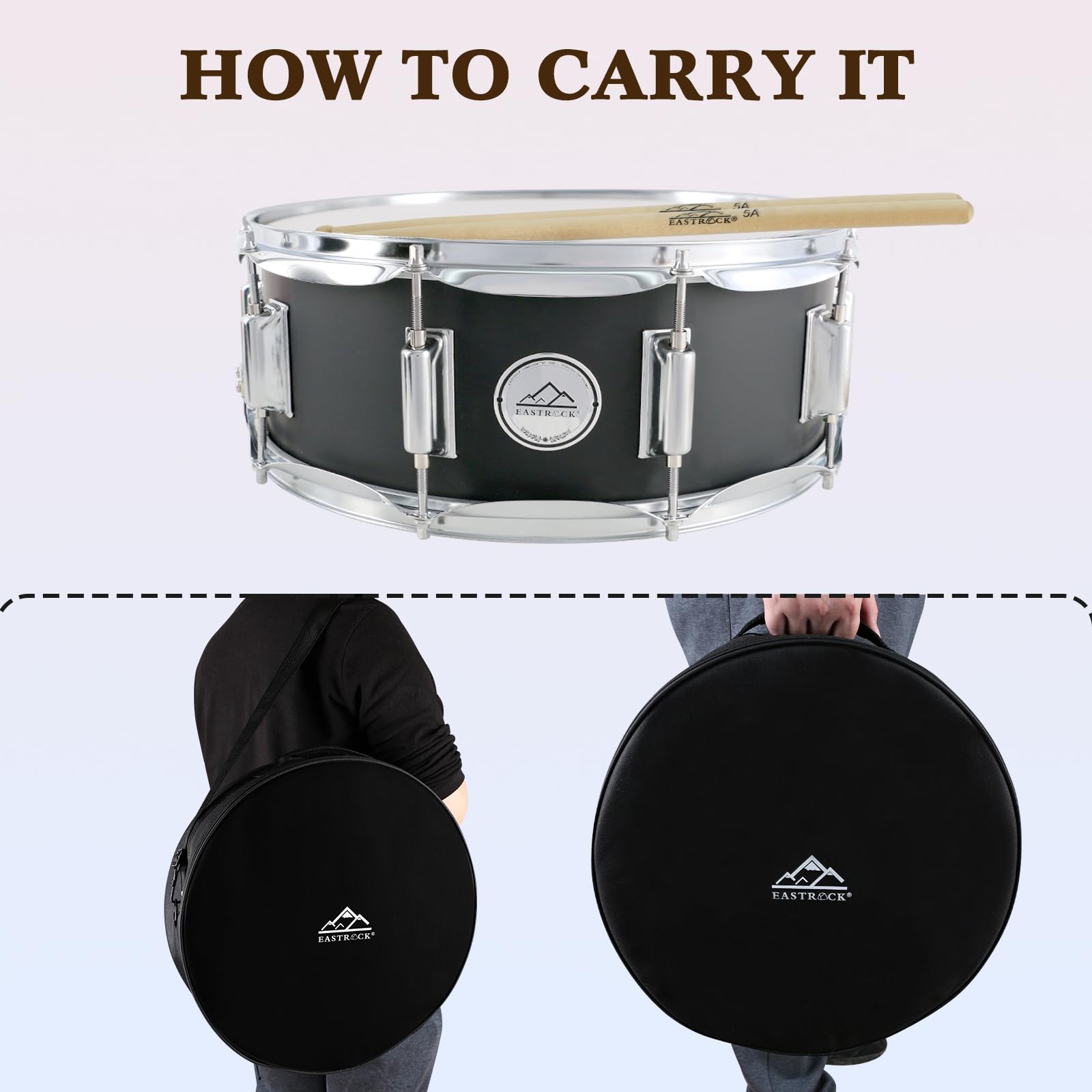 Package Included: Include a 14x5.5 inches snare drum with Coated drum Head, a padded gig bag, a pair of sticks, a drum key and two adjustable neck-strap. Durable oxford cloth snare backpack, it can protects your drum very well.