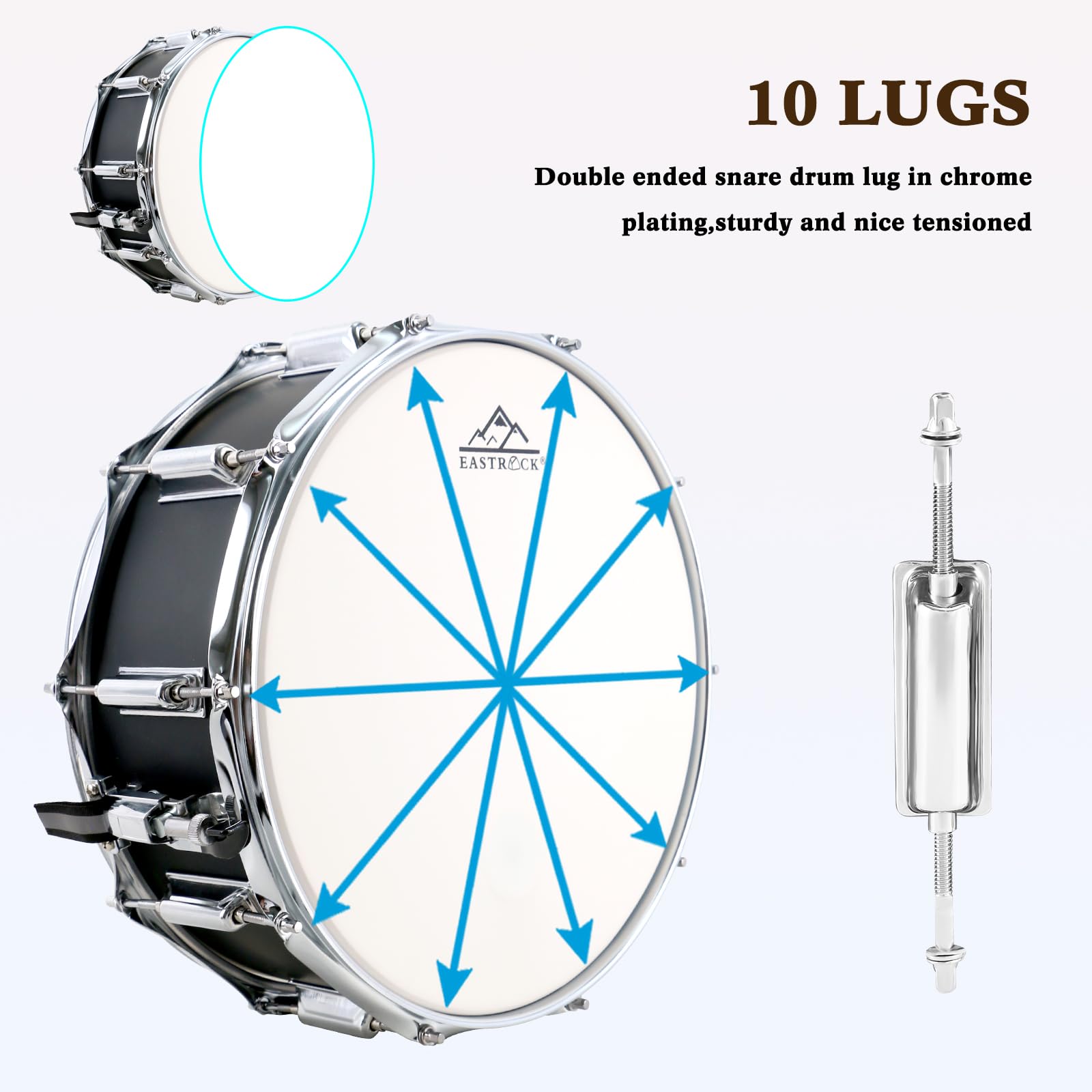Snare Drum Set: Ideal for any drummer's collection or setup, like beginner, student, professionals, or any level drummers, and this 14x5.5” snare drum is suitable for any drum kit practice and performance, especially Pop music. Its sharp and powerful sound serves as a fantastic snare drum.