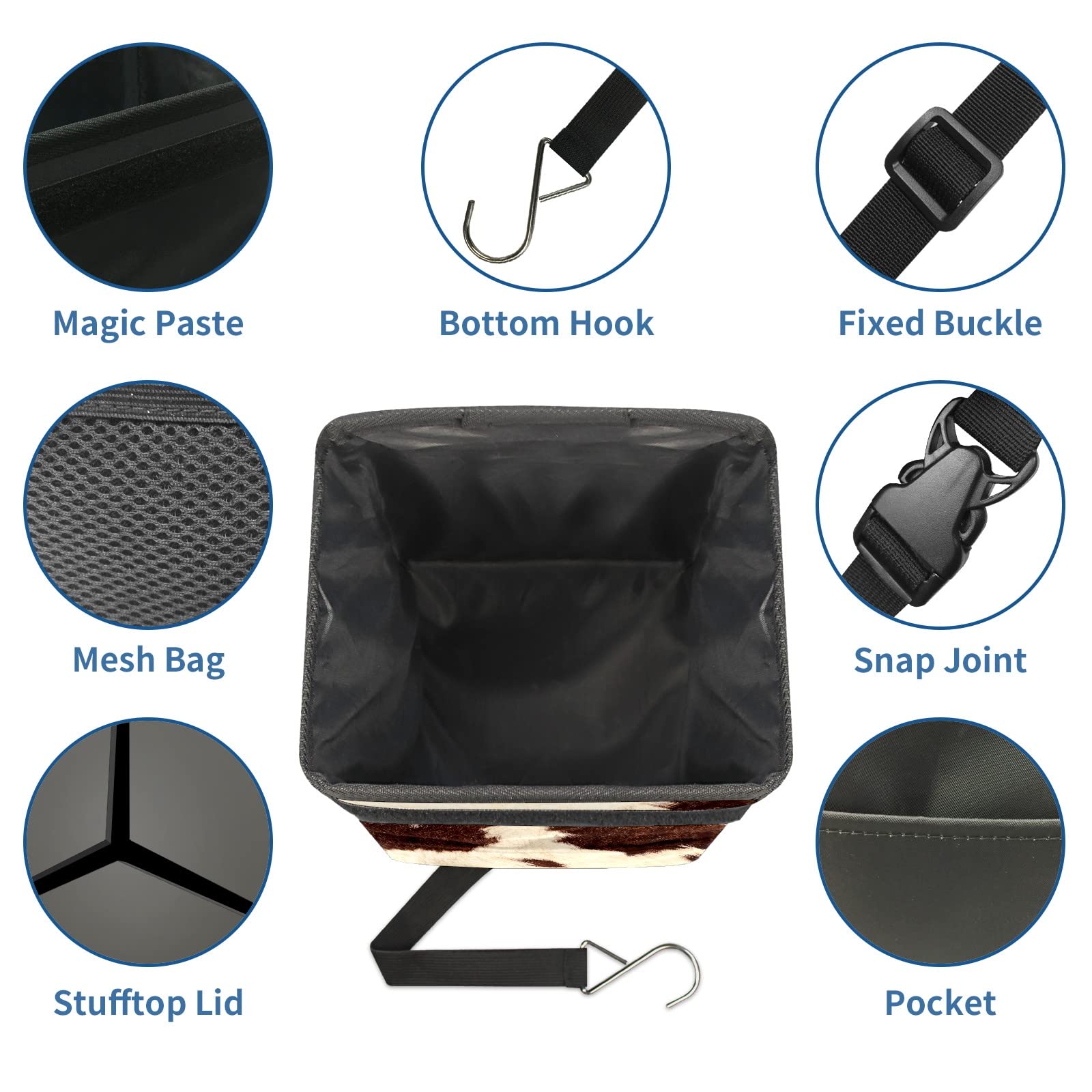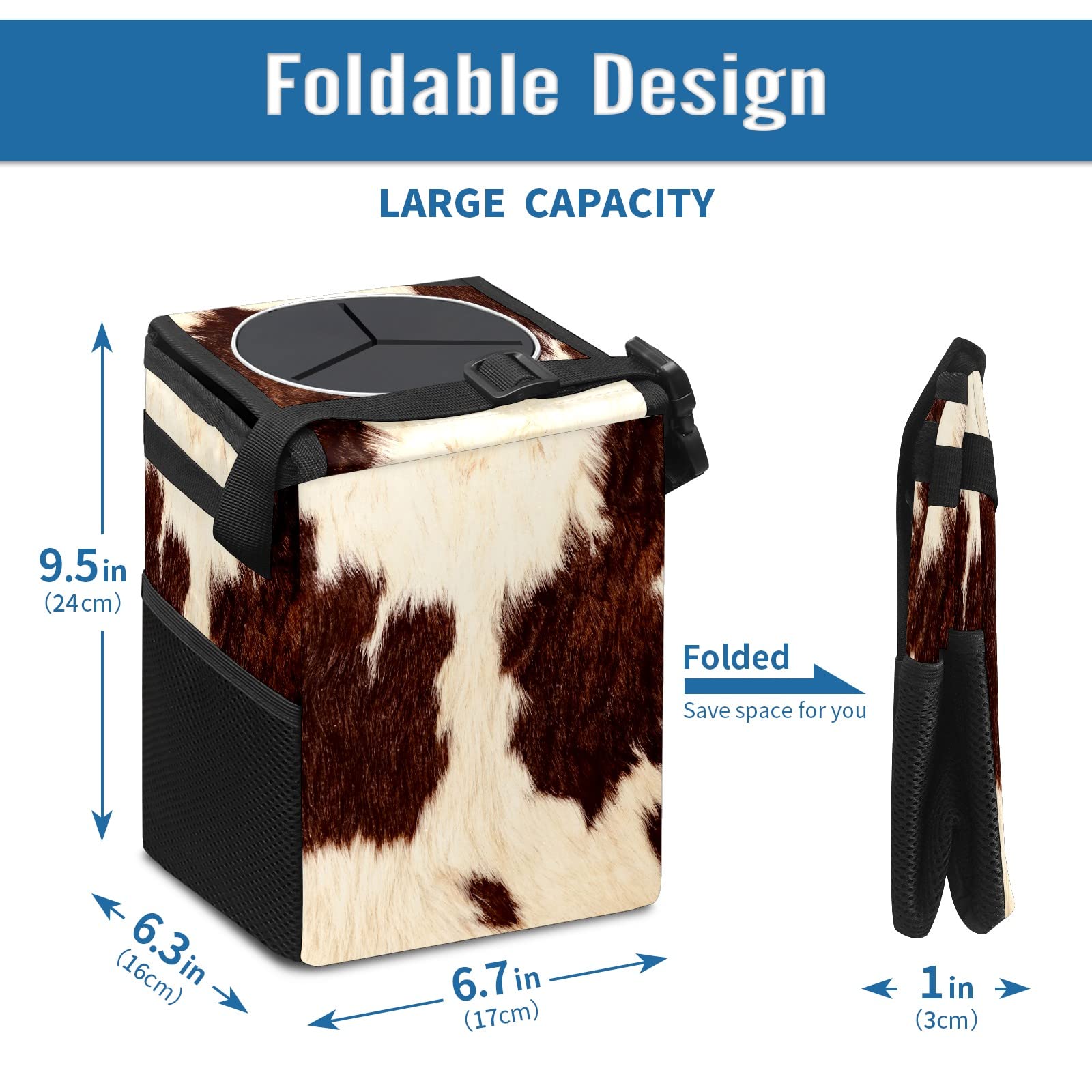 Perfect size:Car trash can size: 9.5x 6.3x 6.7 inches, sufficient space, enough for car trash. This car trash can can be folded up when not in use for better storage.