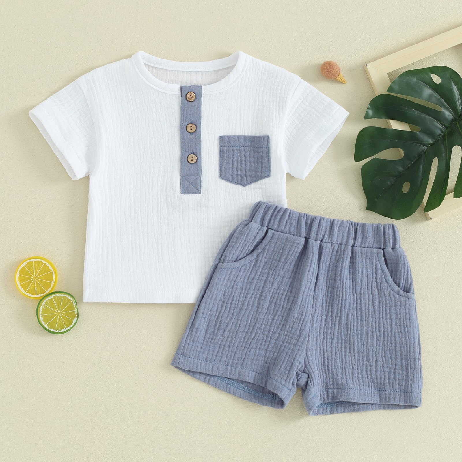 Material: Baby boy summer outfits made of 95% cotton and 5% polyester, soft fabric, comfortable and breathable, will not irritate the baby's skin.