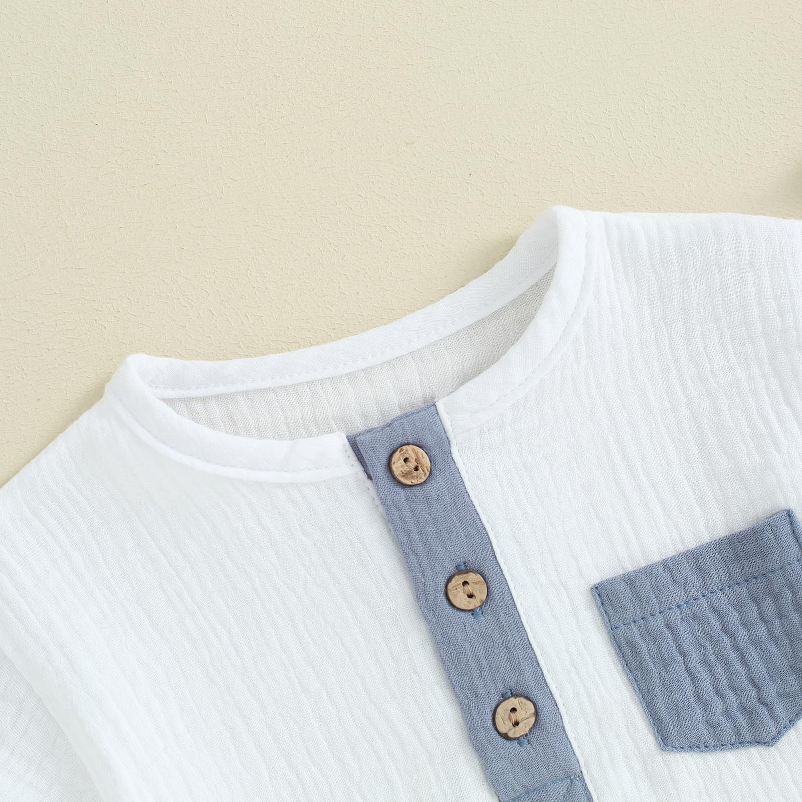 Features: Baby boy short sleeve henley shirt, front button with chest pocket, matching with elastic waist solid color shorts, 2pcs fashion boys summer clothes makes your boys handsome.