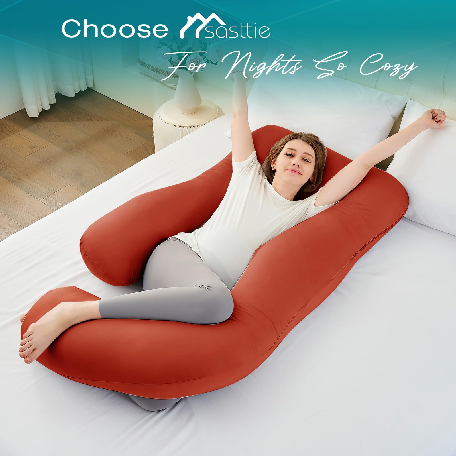Upgraded U Shaped Pregnancy Pillows: Features an ergonomically designed shape, SASTTIE 4.0 U-shaped pregnancy pillow could fit your body well and provide firm support for your sore shoulders, numb arms, growing belly, tight back, as well as swollen feet