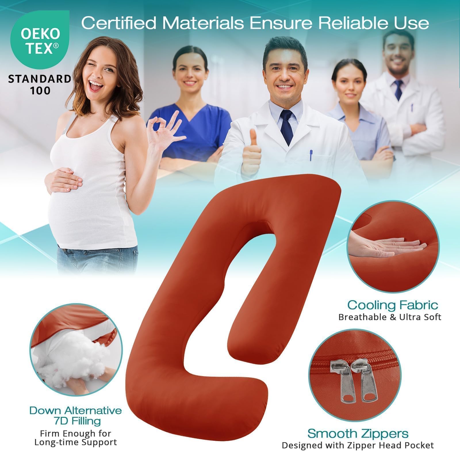 Premium Down Alternative Filling: Our U-shaped full body pillow is filled with 7lbs down-alternative filling. Blended with 40% silicified fiber and 60% polyester fibers, our pregnancy pillow strikes a good balance between support and comfort