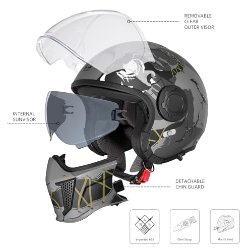 【CONVERTIBLE DESIGN】This helmet offers a versatile design that smoothly transitions between a full-face and open-face configuration, providing flexibility to accommodate various riding conditions and personal preferences