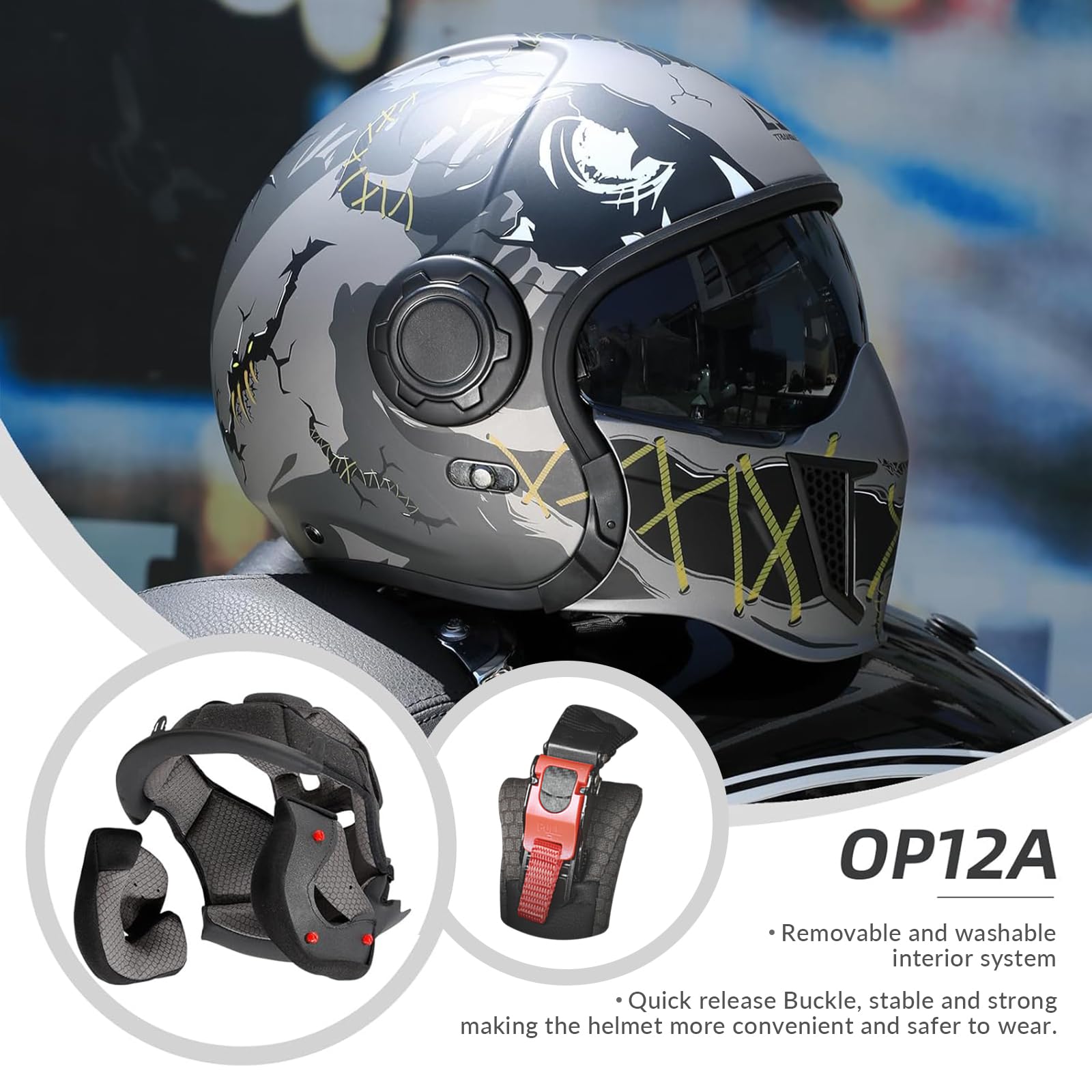 【Comfortable & Breathable Design】Our adult motorcycle helmets have a removable, washable, and replaceable lining for your comfort and breathability