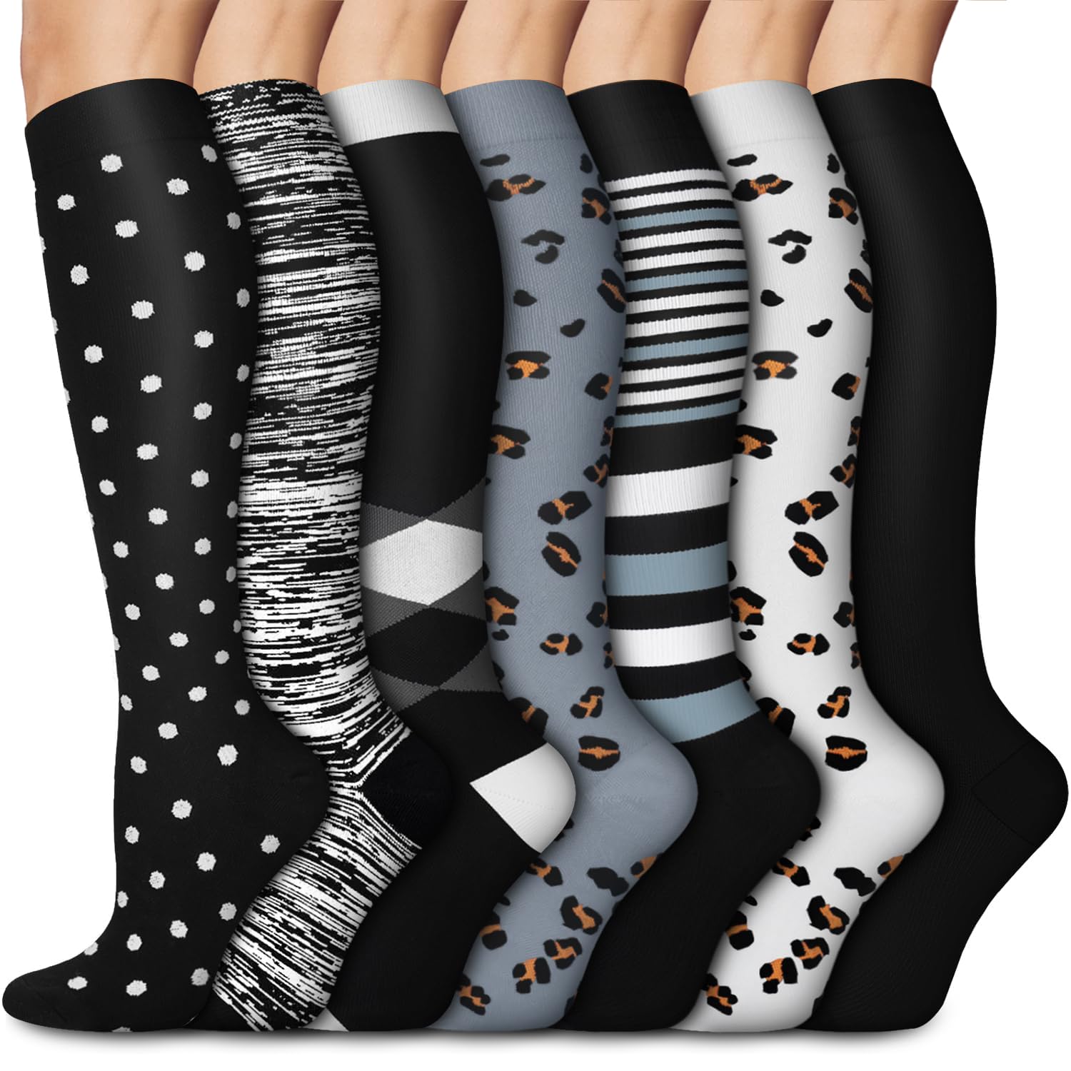 ✔️Fun and Vibrant Designs--If you love to express yourself through fashion, our colorful and fun compression socks are perfect for you. Each pair is meticulously designed with unique patterns that are sure to catch the eye. The reinforced toe and heel areas provide extra support and comfort, making these socks both durable and stylish. Suitable for all occasions, from casual wear to sports and adventure.