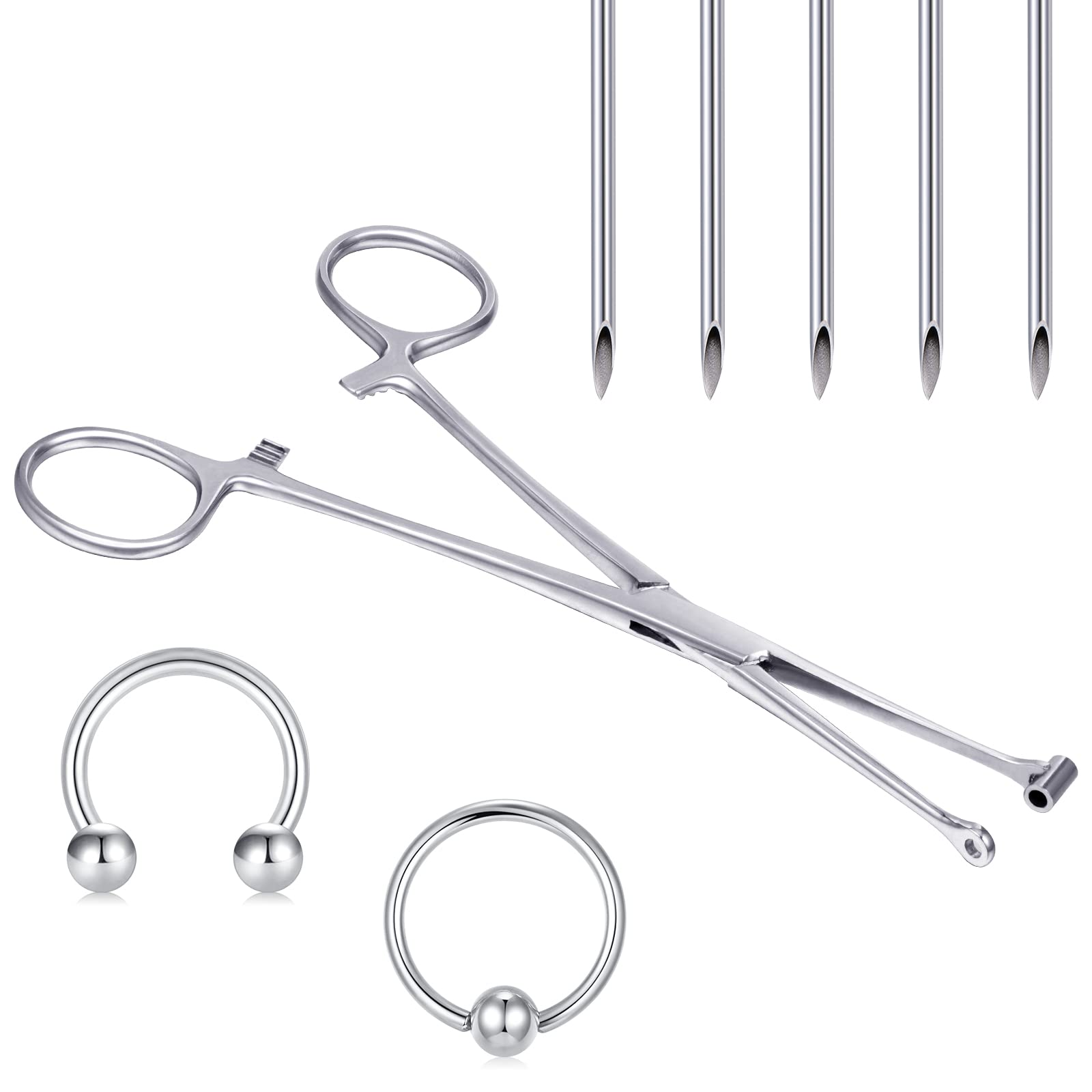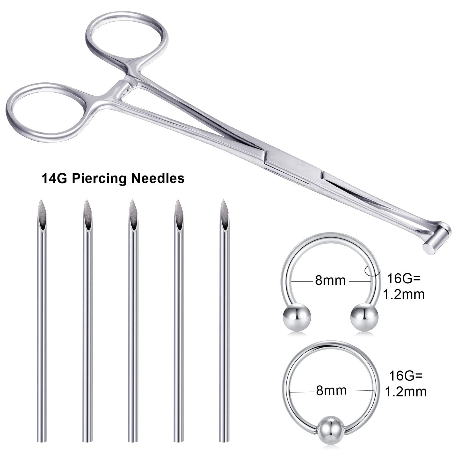[SIZE]Tragus Forceps: 6"length; 3mm wide closed bucket; Horseshoe and captive ring thickness: 16gauge; inner dia:8mm; Piercing Needles:14G-5pcs.