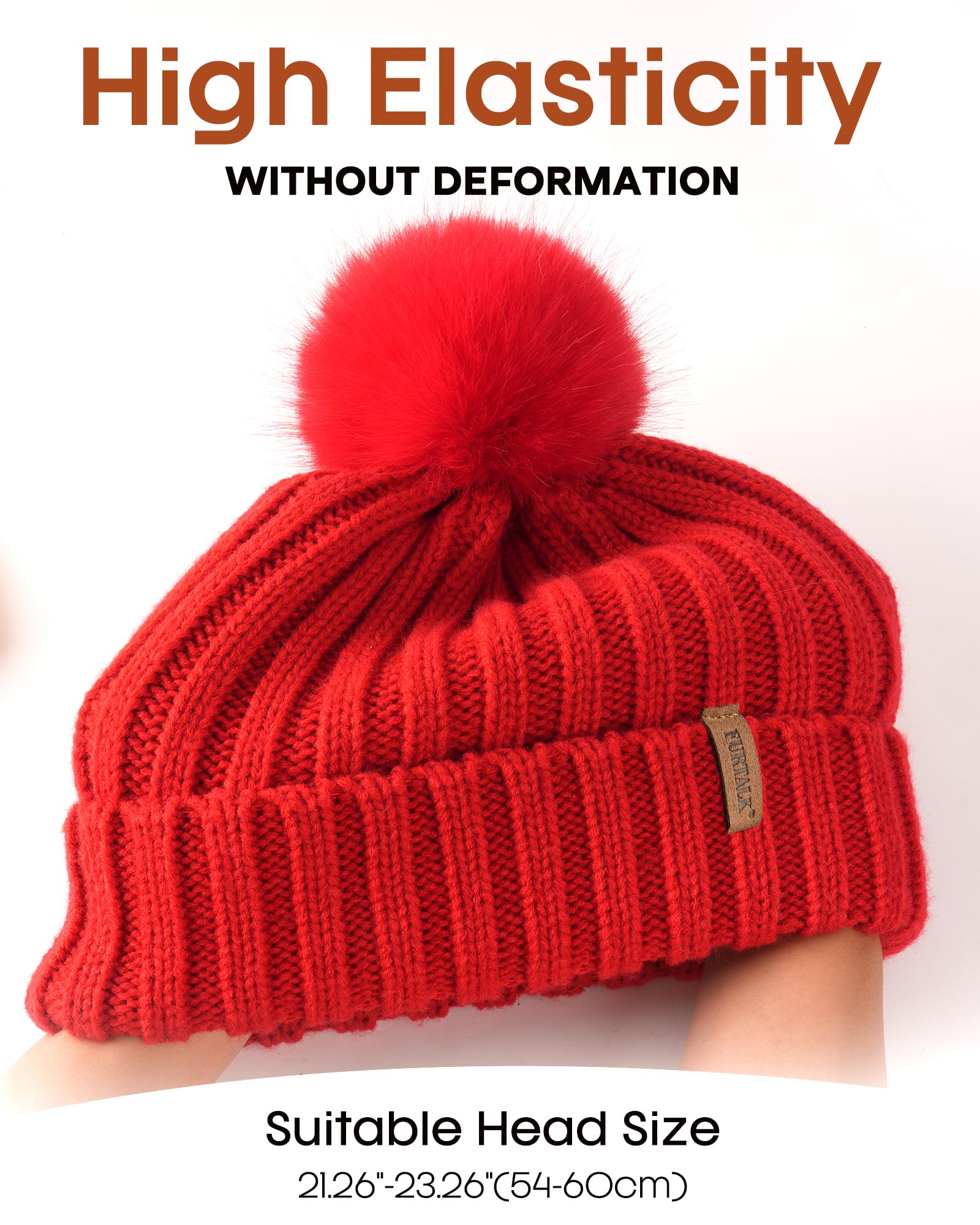 Pom Pom Hat - The winter hat with a faux fur pompom,this puff ball is bigger,super cute and removable;The pom pom snaps securely in place when you want to wear it, and is easily removable when you don't;