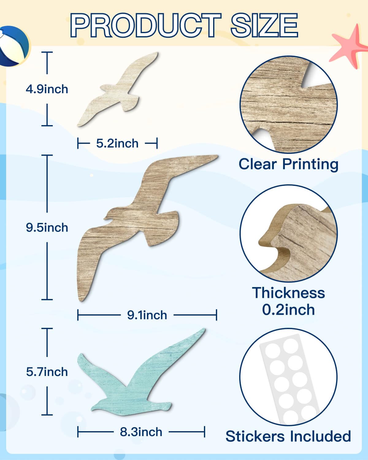 Cute Seagull Decoration Set: You will receive 3 pieces of wooden Seagull sea wall art pieces, with 3 different pattern combinations and sizes, sufficient to meet your decoration needs, allowing you to make different arrangements at will