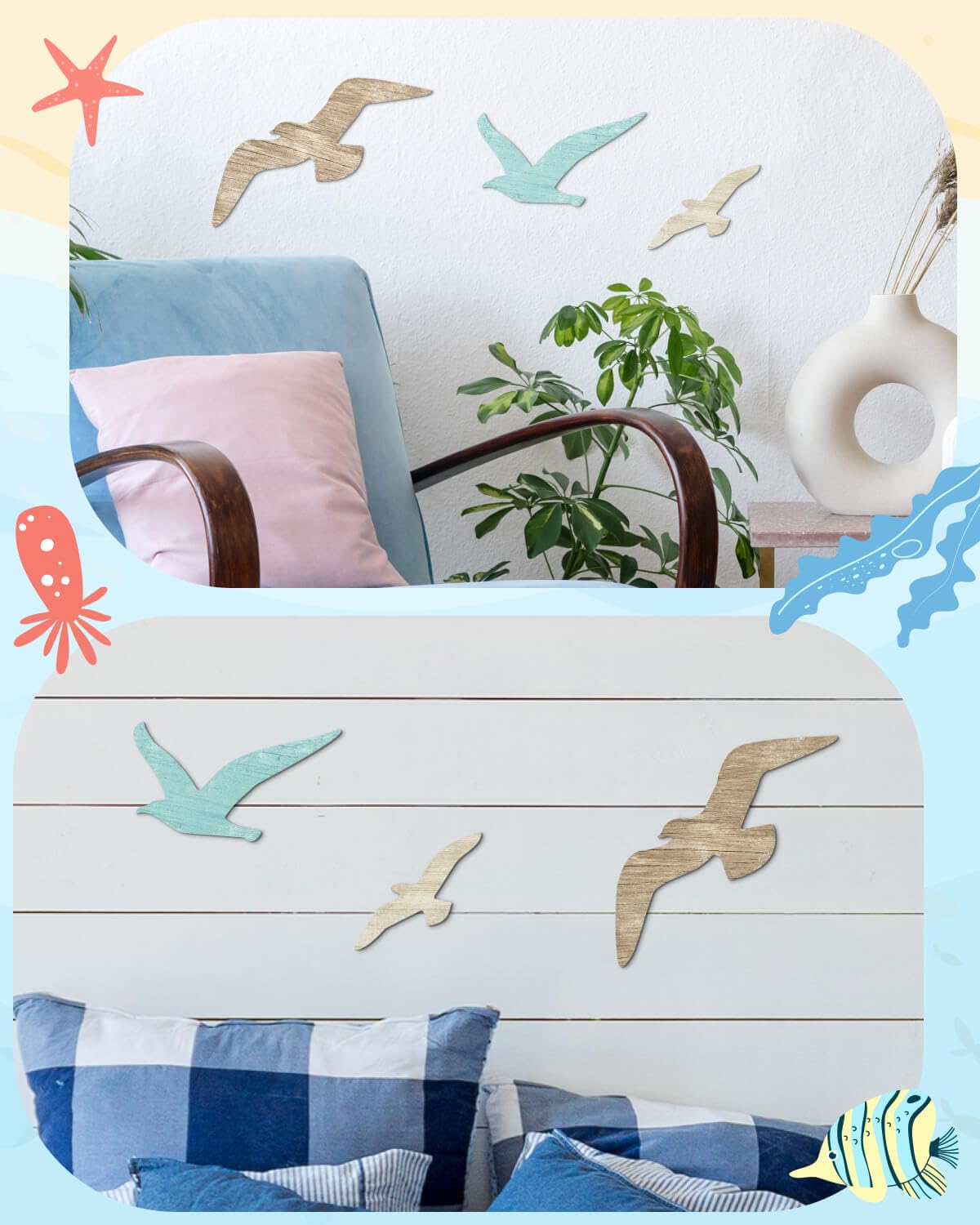 Versatile and eye-catching: Design cute nautical beach Seagull decors that are suitable for various themes, such as pirate decoration, ocean decoration, sailboat decoration, coastal decoration, and ocean theme; They are suitable for bedrooms, bathrooms, homes, lake houses, offices, shops, daycare centers, children's rooms, etc