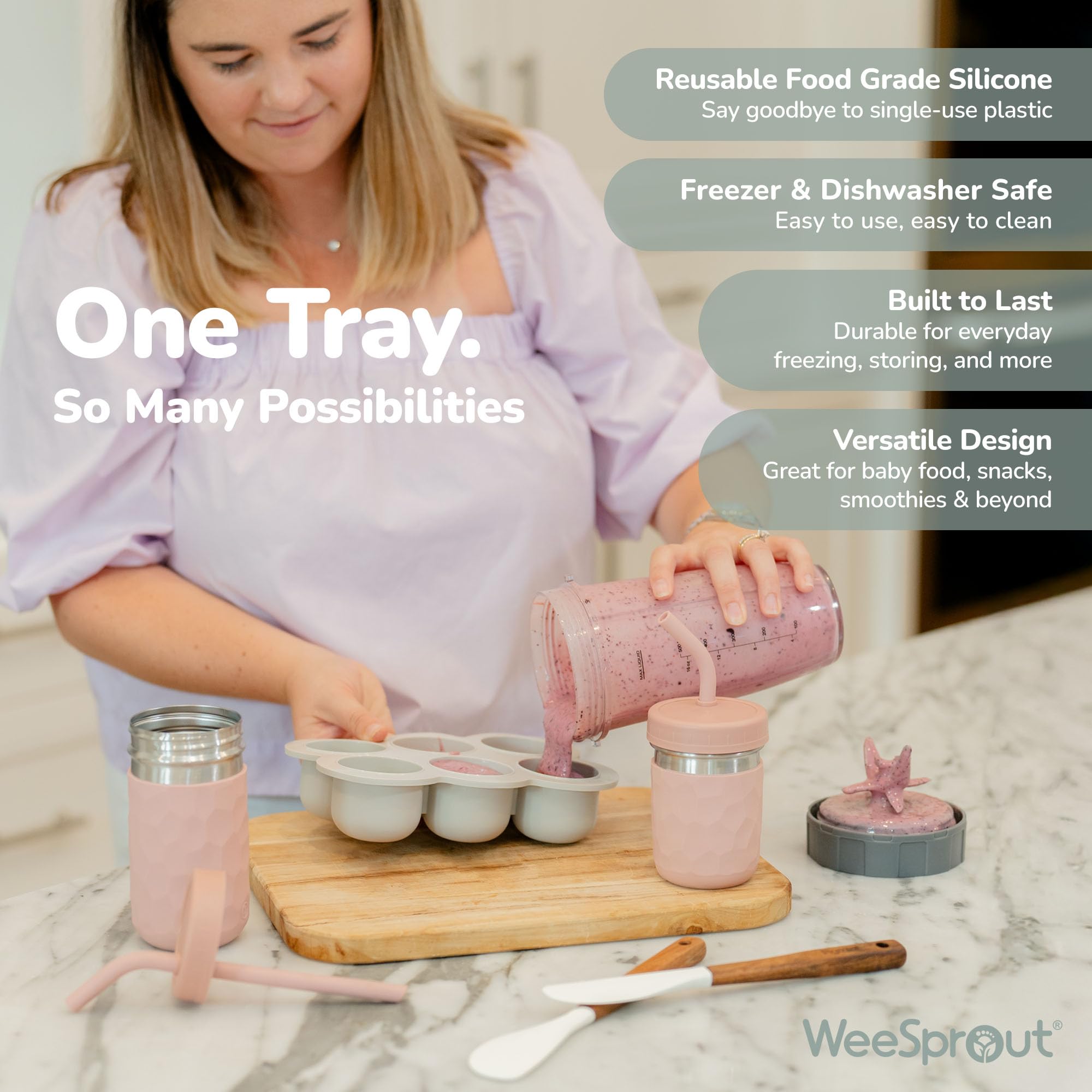 BABY FOOD FREEZER TRAY FOR QUICK & EASY MEAL PREP - Cut hours off baby food meal prep! Make all your baby’s meals at one time – no more making baby food every day or cleaning multiple baby food storage containers throughout the week! Freeze baby food, purees, breastmilk, and more – then store your food in the tray or transfer to a zip locked bag to make multiple batches.