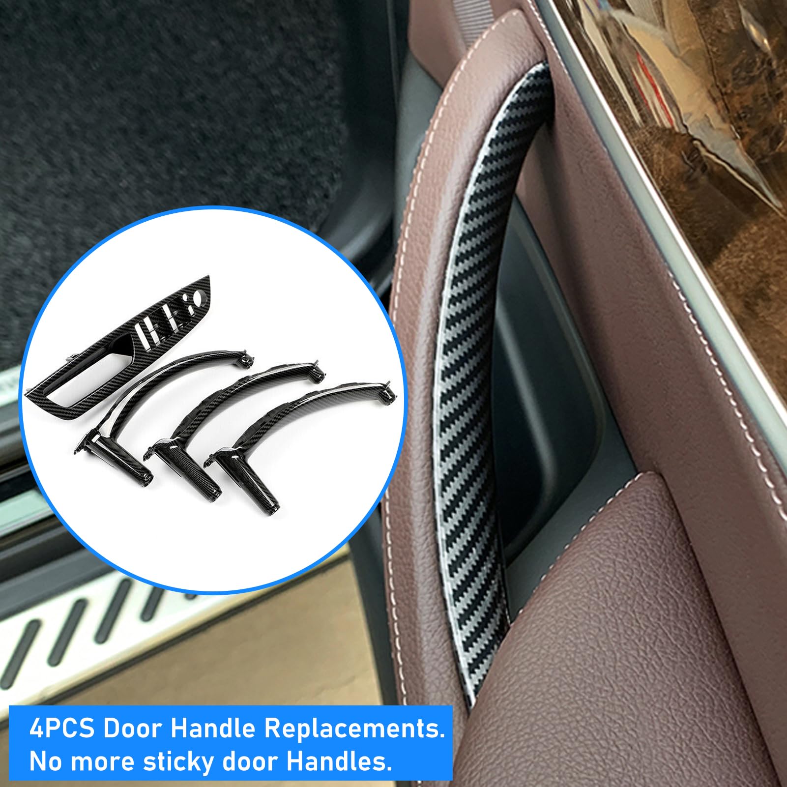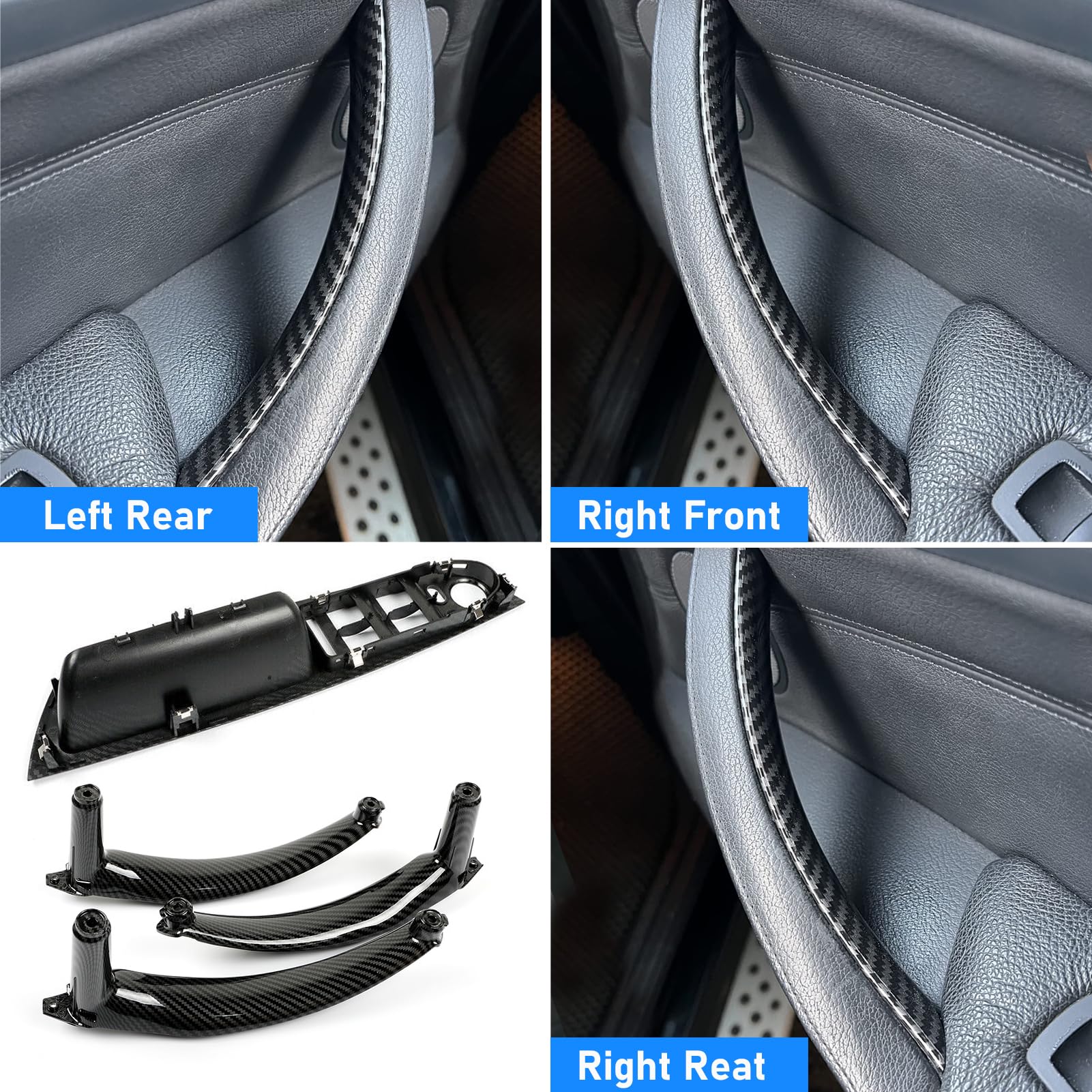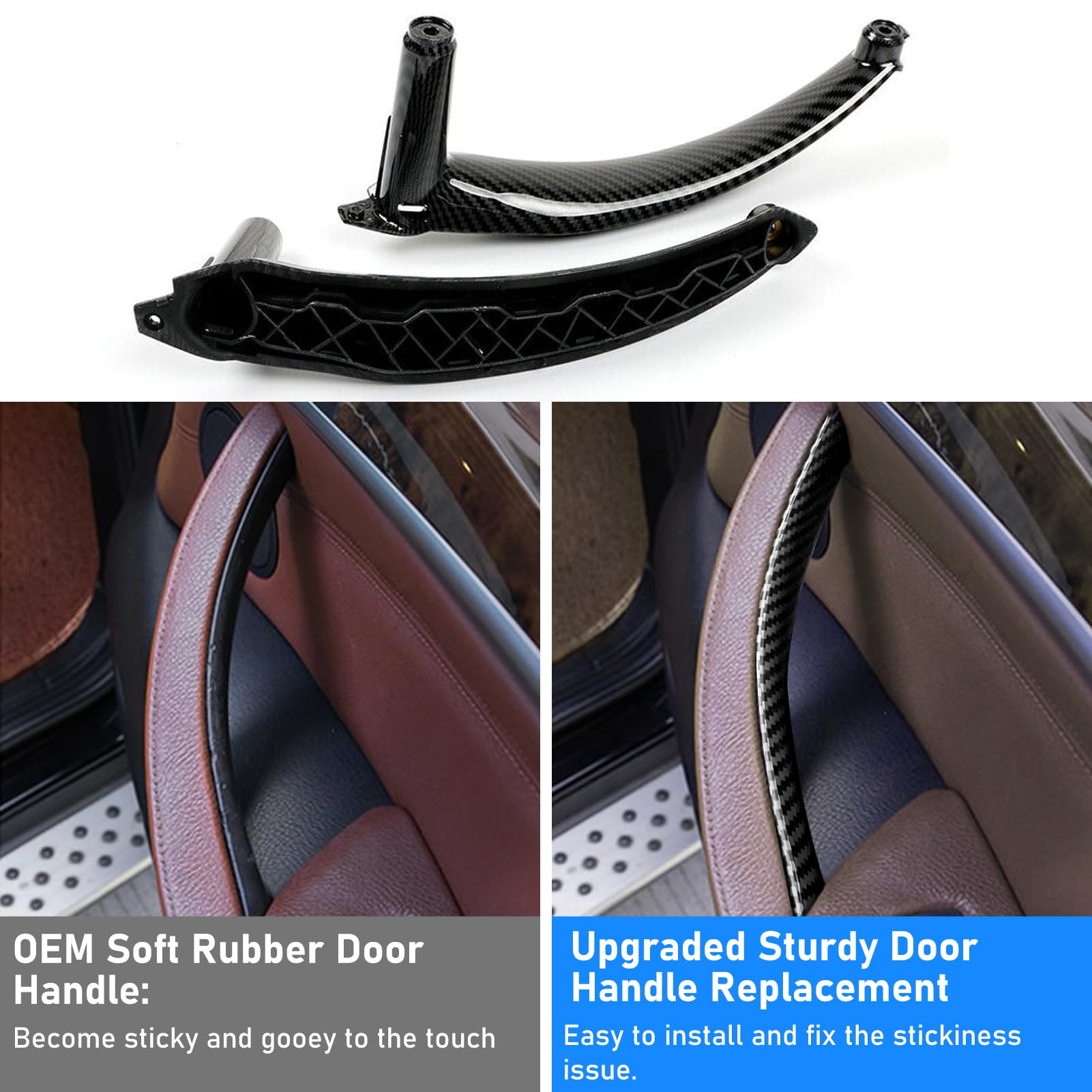【Advanced Material with Carbon Fiber Texture】 Our Door Handle for E90/E91/E92/E93 is made of ABS+PC material instead of soft rubber, which are smoother and stronger. No more rubbed off with our x6 x5 Door Handle Replacement. This door handle keeps original car color and lustre,anti-stain,anti-scratch,anti-deglue.NOT REARL CARBON FIBER.