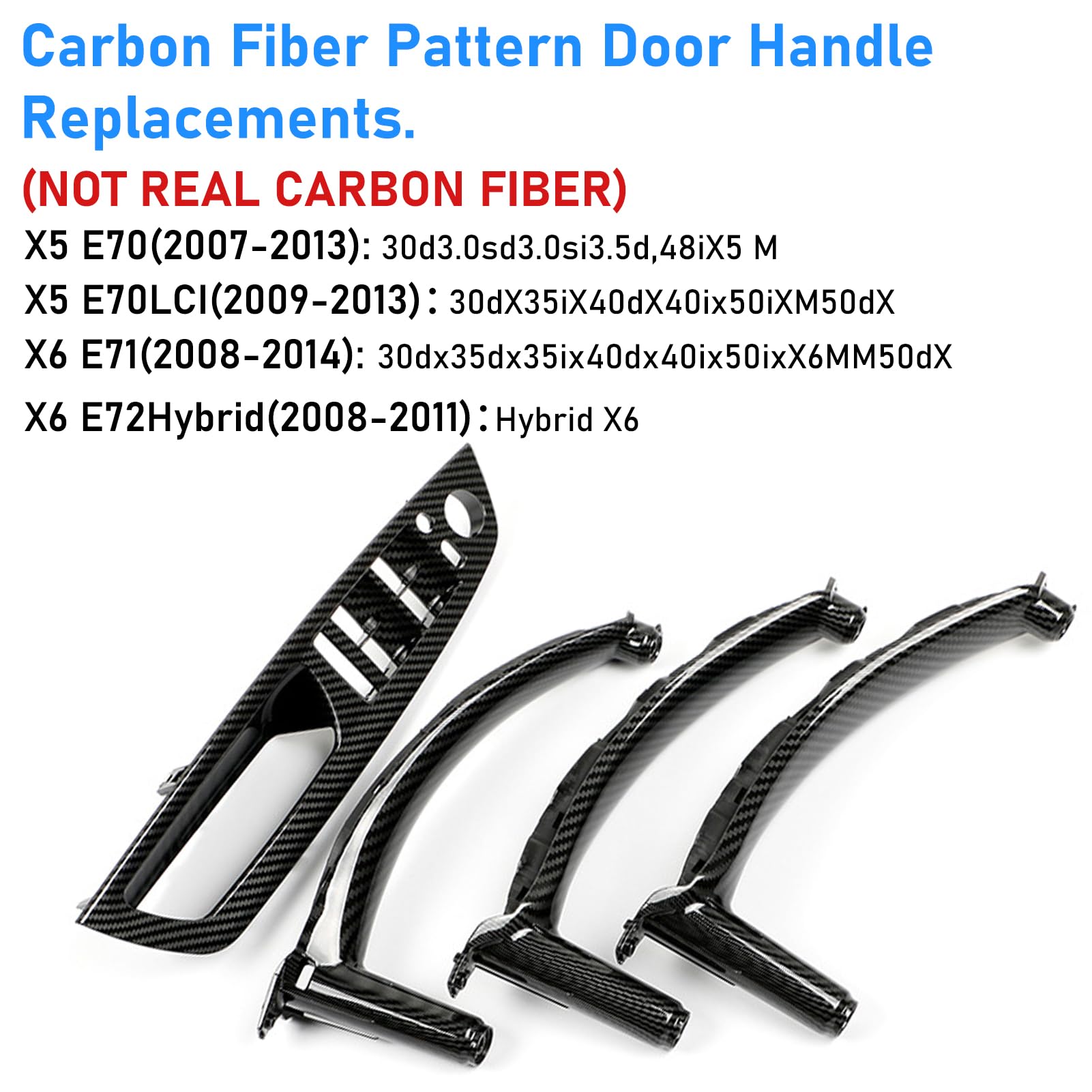 【Fitment】4PCS Driver Side Window Switch Cover and Door Pull Hanlde Replacement Compatible with Compatible with BMW X5 (E70/E70 LCI): 3.0si, 4.8i, xDrive30i, xDrive35d, xDrive48i, xDrive35i, xDrive50i,X5 M (2008-2013). Compatible with BMW X6 (E71/E72): ActiveHybrid, xDrive35i, xDrive50i,X6 M (2008-2014).