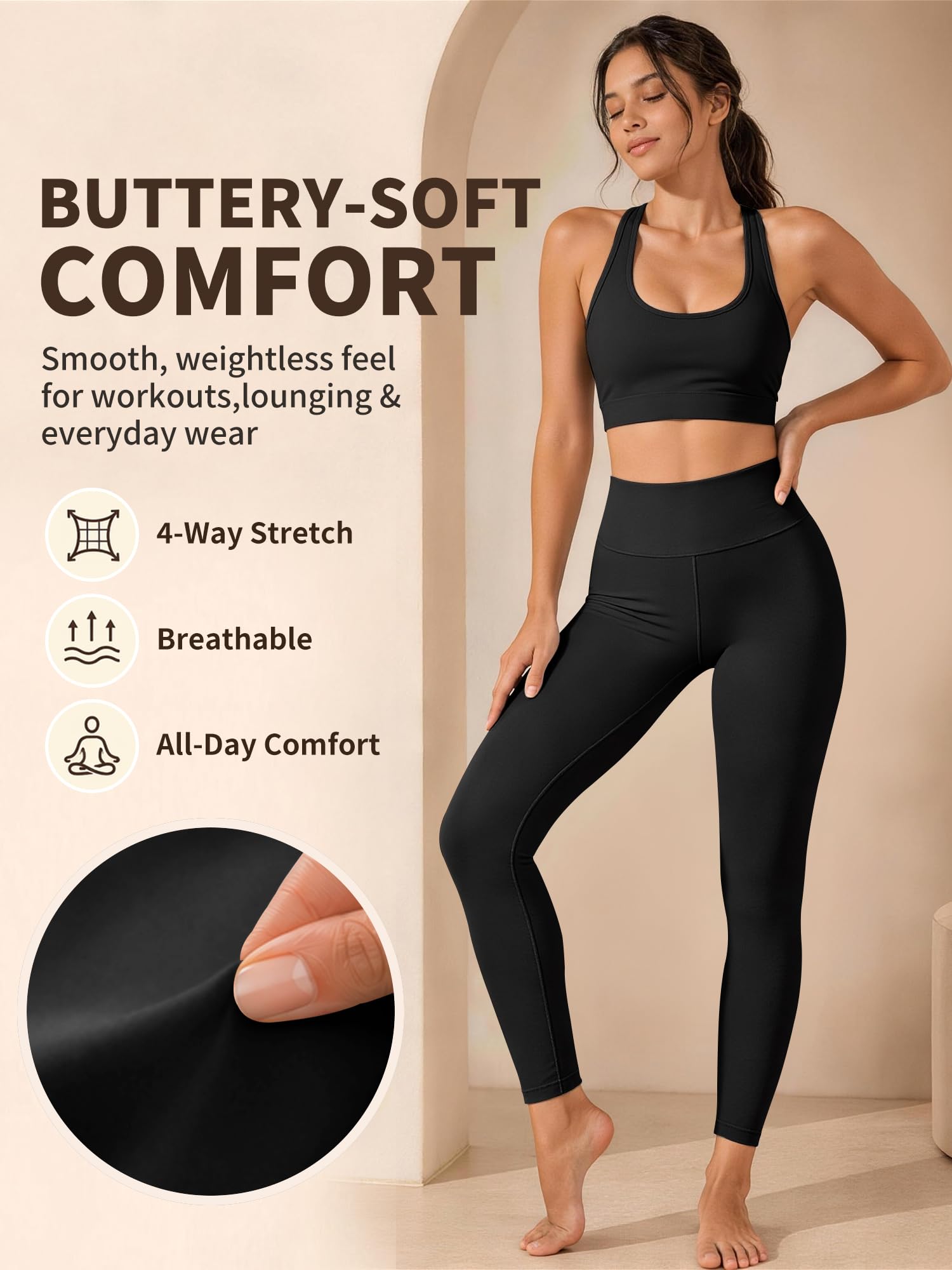 ✅ 【SUPER SOFT FABRIC】-Once you try on our leggings, you will fall in love with the perfect blend of softness and stretchiness.Our high-waisted leggings are made from premium opaque fabric that ensures complete coverage, allowing you to move with confidence without worrying about transparency.These leggings are exceptionally gentle on your lower body, fitting like a second skin.No matter what sports you do, you can show your most beautiful self.