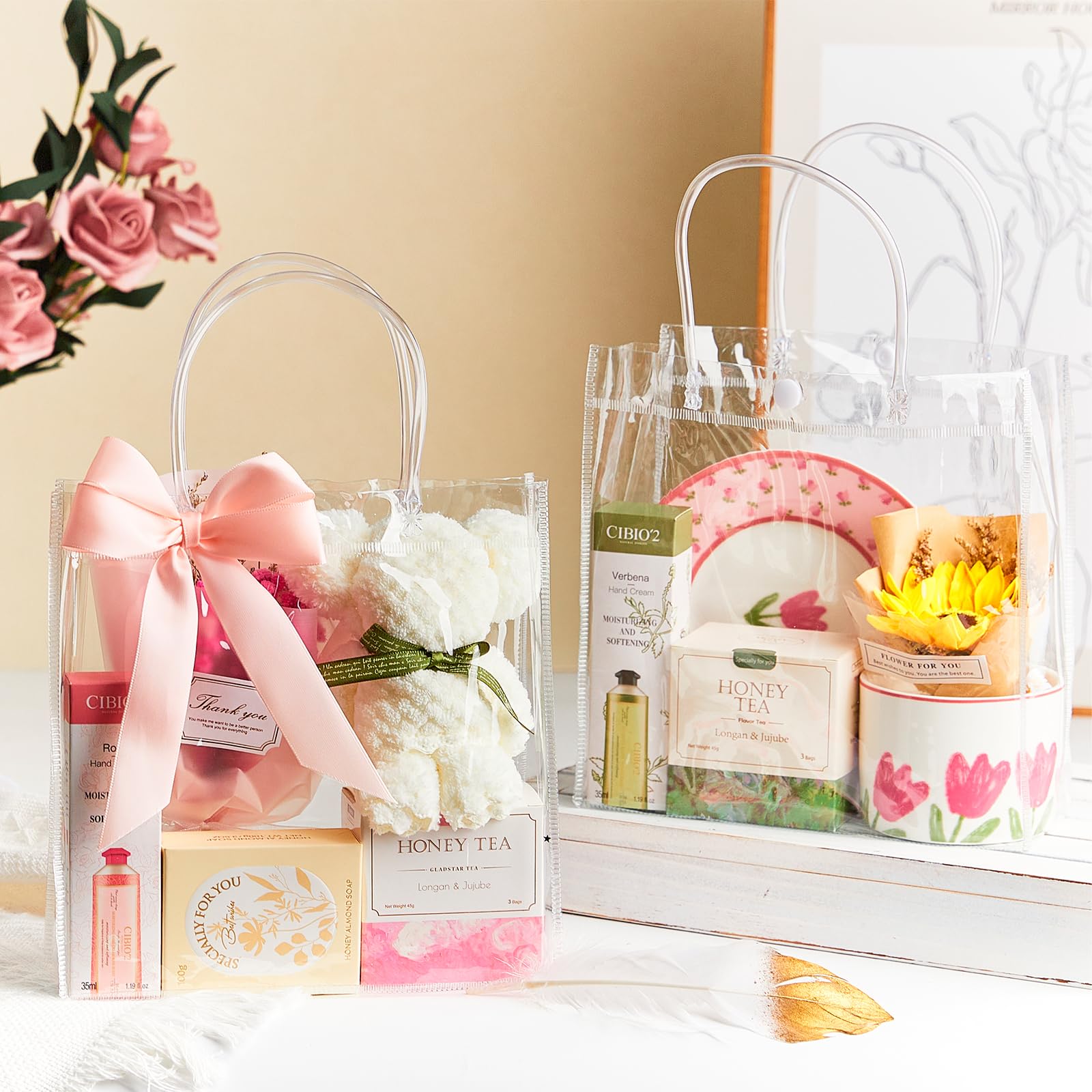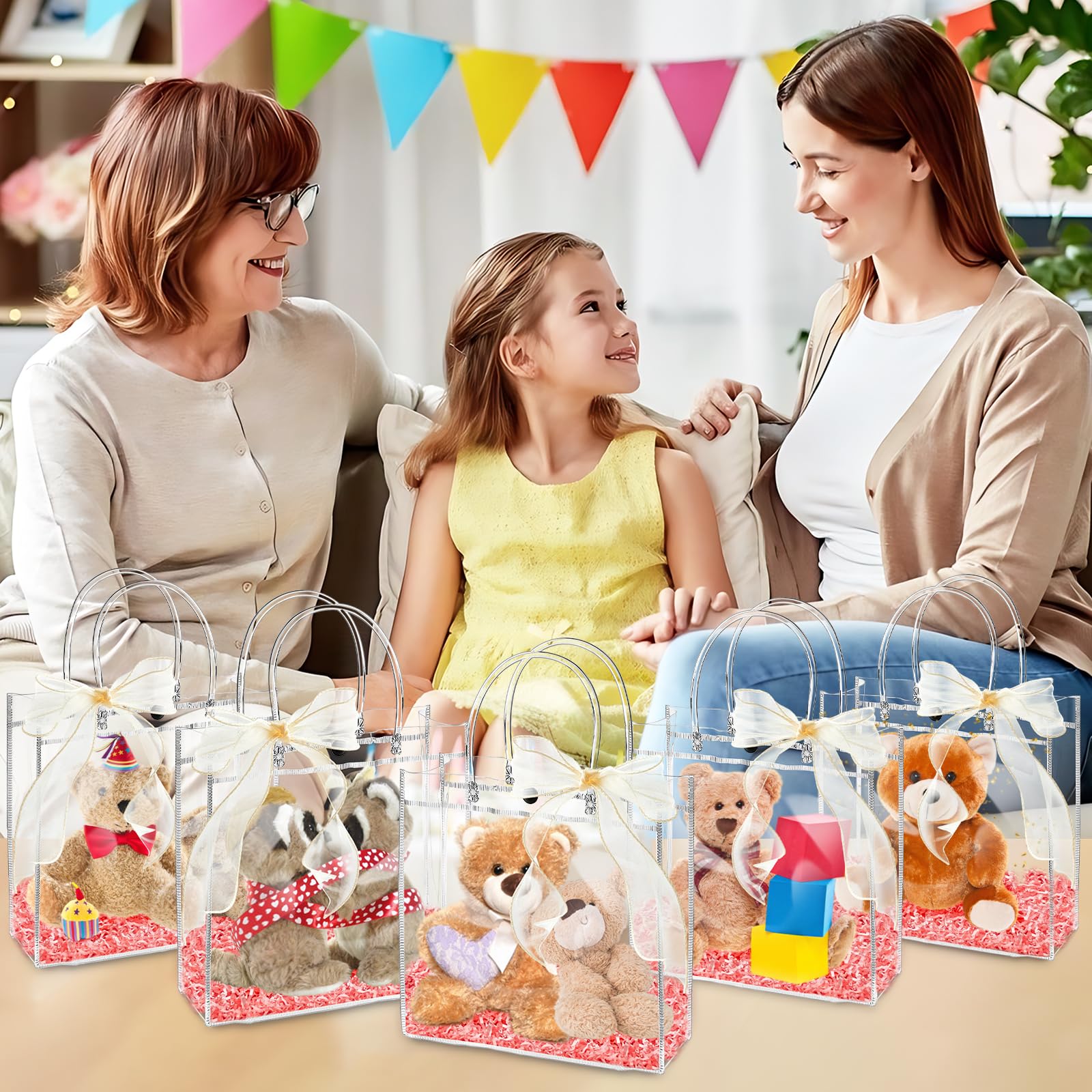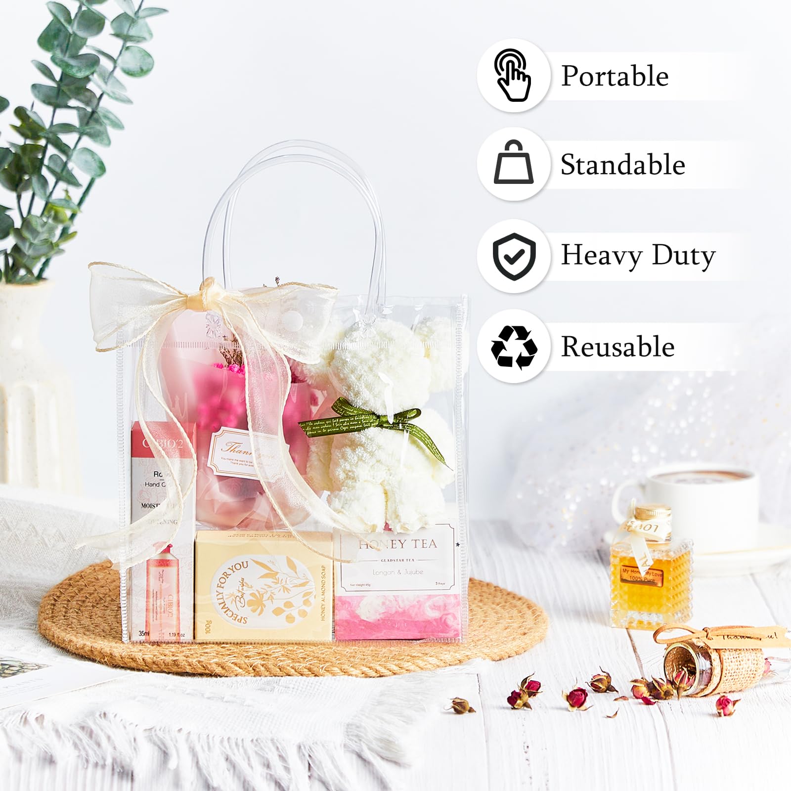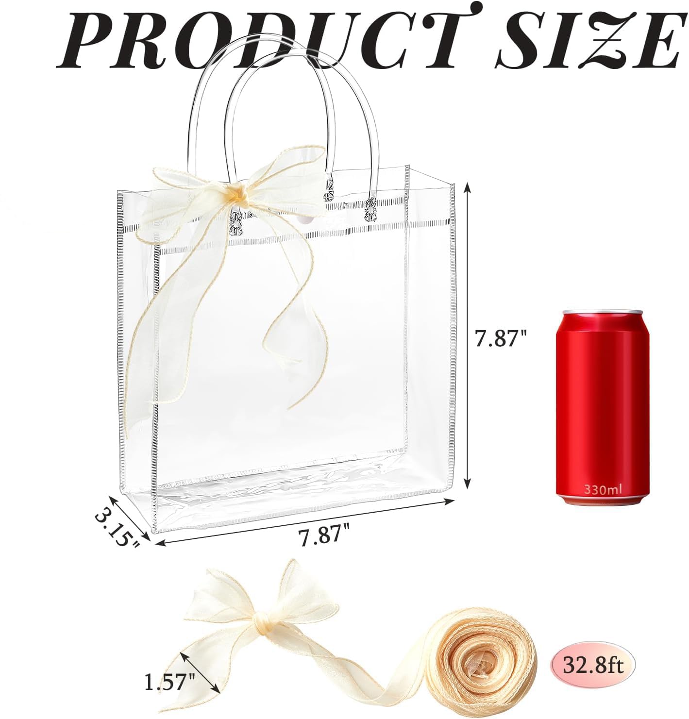 Package Included: You will get 24pcs clear gift bags with handles, coming with 1 roll of 32.8ft champagne ribbon. You can share the extra bags with family and friends.