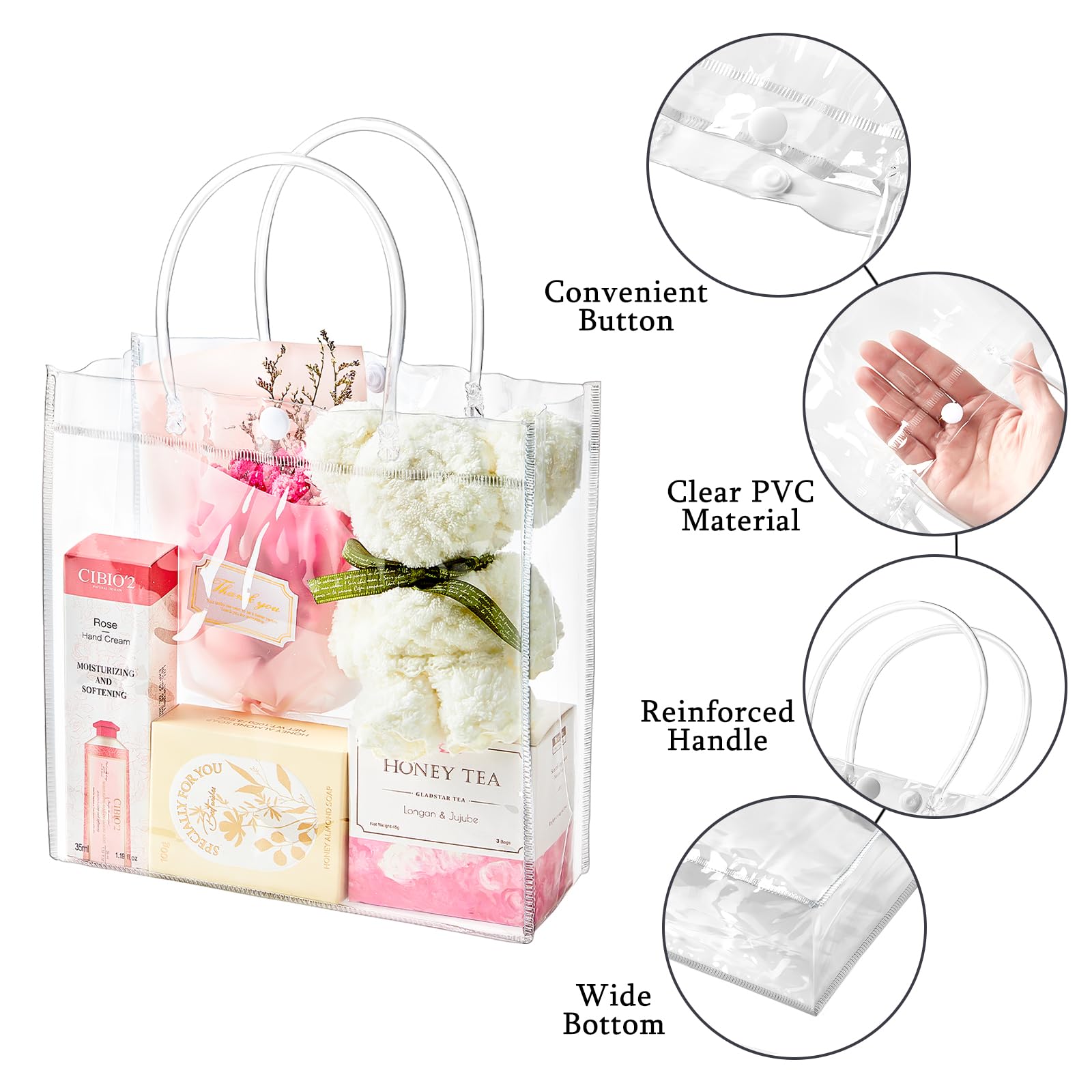 Premium Materials: Our small gift bags bulk are made of high quality PVC plastic, lightweight, waterproof, transparent and reusable. Compared with ordinary plastic bags or paper bags, they are stronger and more sturdy.